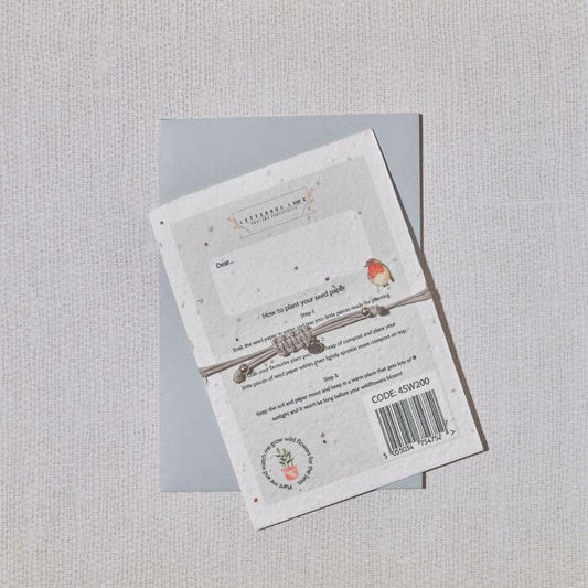 Seed Card "Robins Appear" With Heart String Bracelet