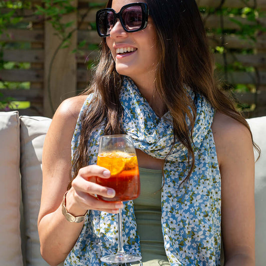 POM925 - Pink and jade daisy print scarf