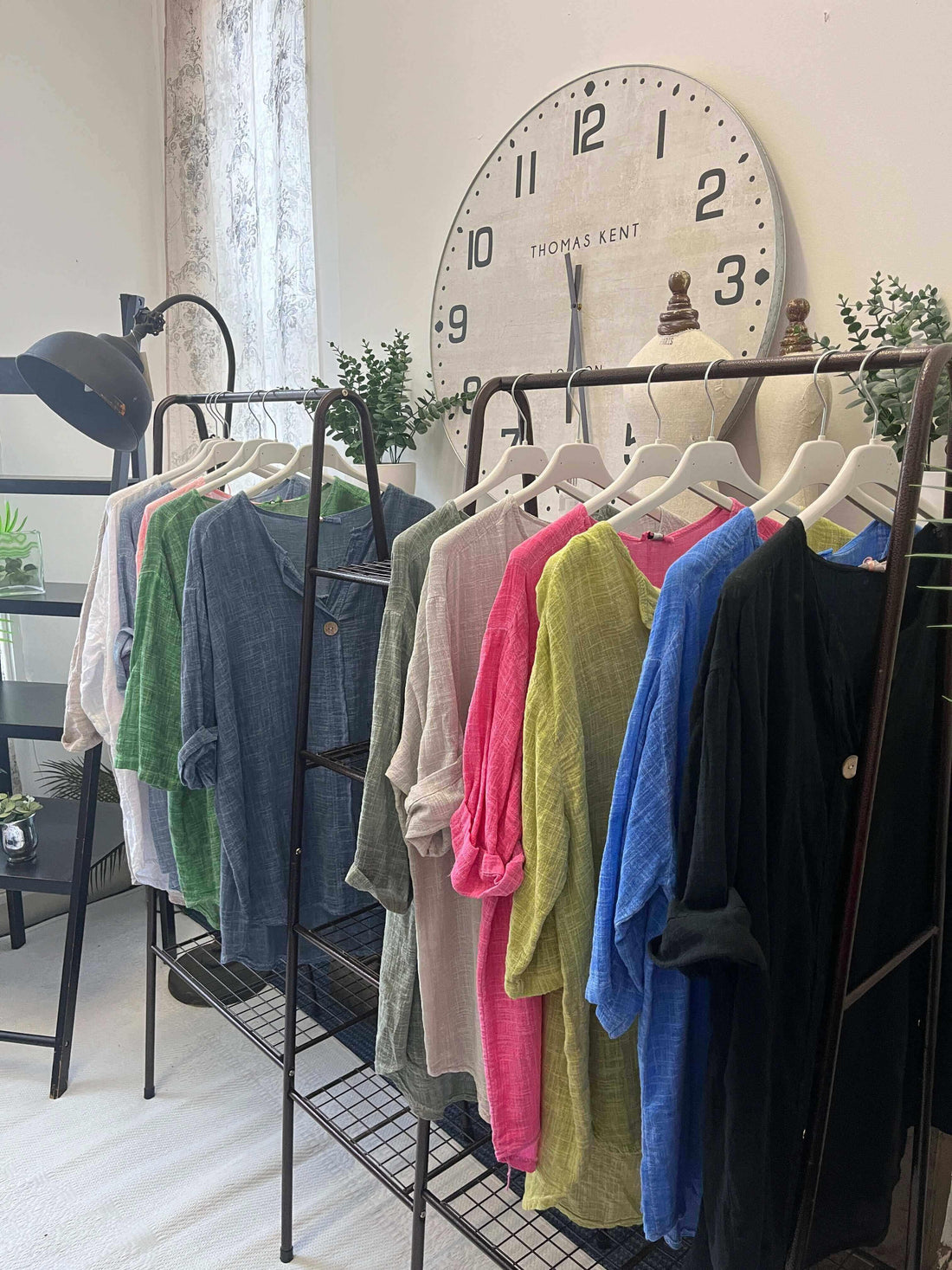 - Atlanta One Button Boxy Slouch Blouse: Effortless and playful, this linen blouse features a boxy fit and a single button detail. With sizes ranging from 8-14/16, it's a versatile piece that can elevate your Lagenlook outfits.