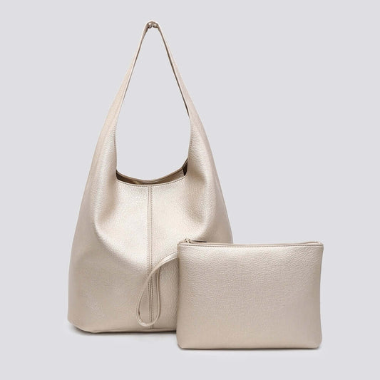 Soft Faux Leather Shoulder Bag with Matching Clutch Bag