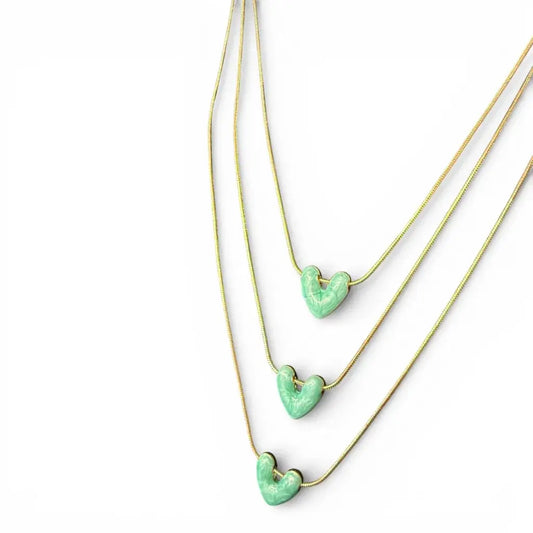 Jess & Lou - Multi-Layer Heart Pearlescent Necklace Aqua