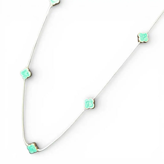 Jess & Lou - Multi-Layer Clover Pearlescent Necklace Aqua