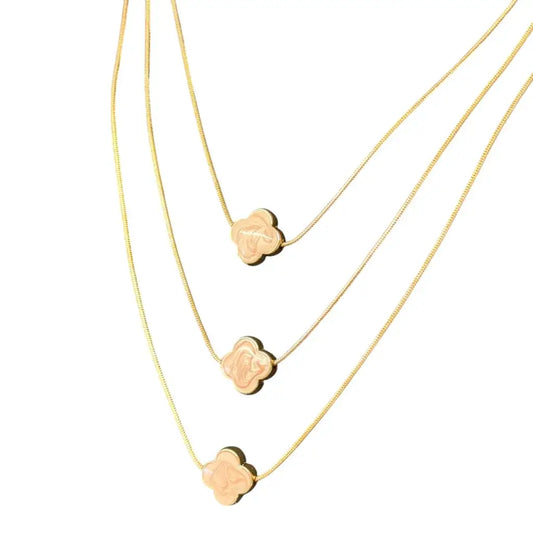 Jess & Lou - Multi-Layer Clover Pearlescent Necklace Pink