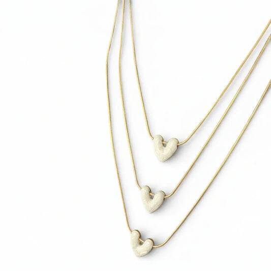 Jess & Lou - Multi-Layer Heart Pearlescent Necklace White