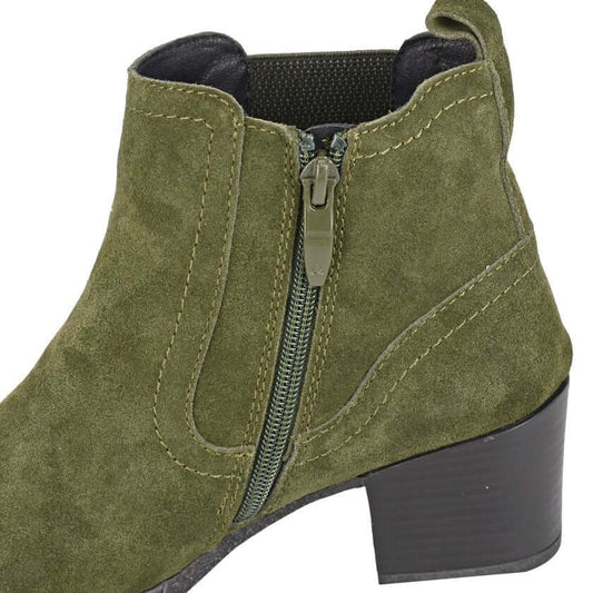 Alessina Real Suede Zip Ankle Boot - Khaki
