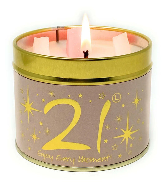 Lily Flame 'Happy birthday! 21st' Candle in a tin
