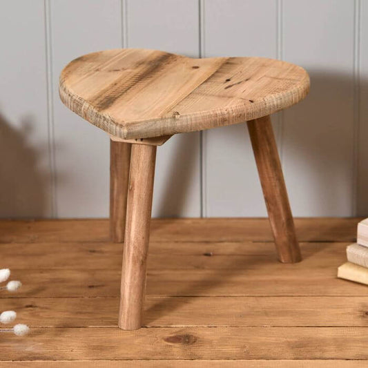 Recycled Wood Ornamental Heart Shaped Stools - Set of 2