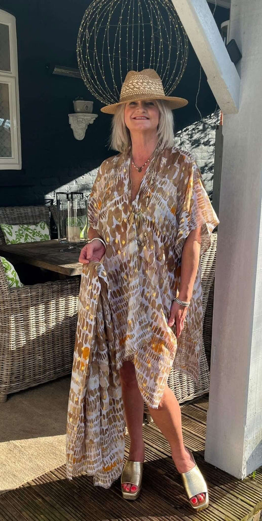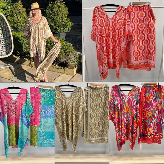 Ladies Geometric Kaftan & Scarf/Sarong Combo