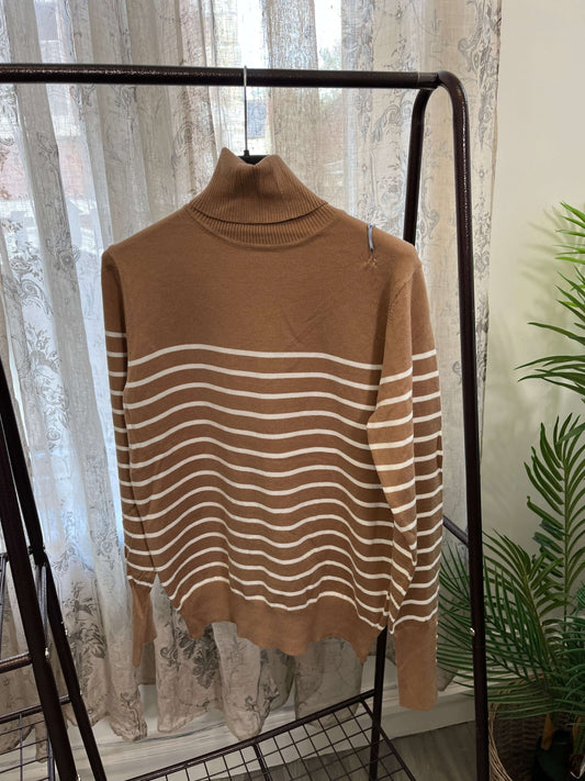 Stripe Neat Fit Ladies Polo Neck Jumper