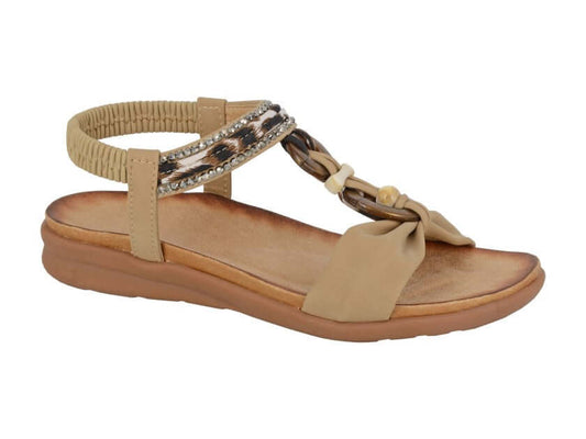Elena - Beige Twin Touch Fastening Elasticated Sandal