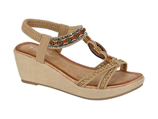 Mirian - Beige Twin Touch Fastening Halter Back Wedge Sandal