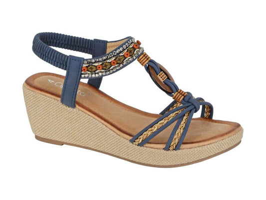Gioela - Navy Jewelled Sling Back Platform Sandal