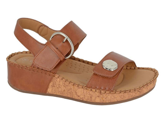 Corina - Tan Touch Fastening Toe Post Wedge Sandal