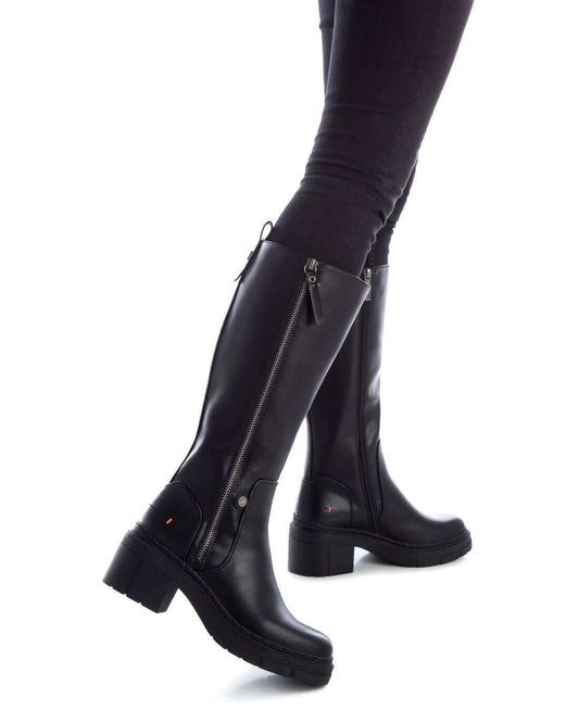 Refresh - Black Faux Leather Chunky Tall Boot
