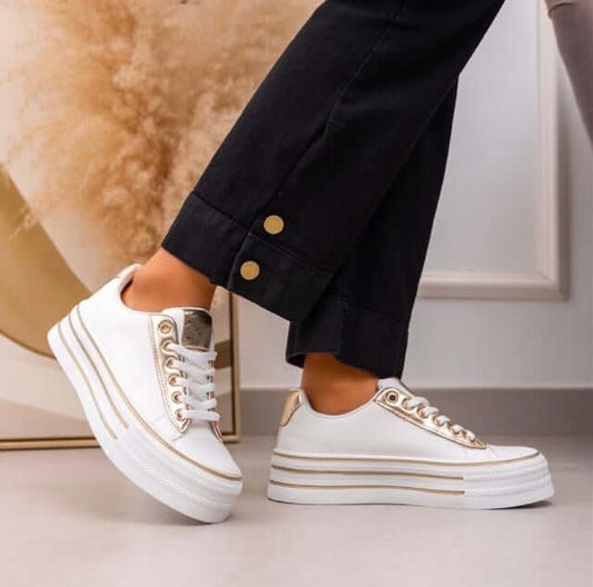 Metallic Detail Ladies Platform Trainers