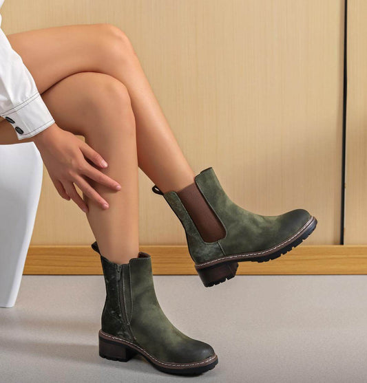 Khaki Faux Suede Metallic Detail Chelsea Boot