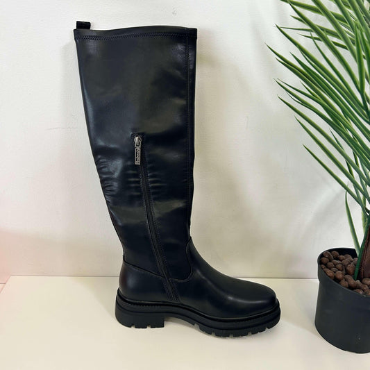 Refresh Chunky Black Leatherette Tall Ladies Boots