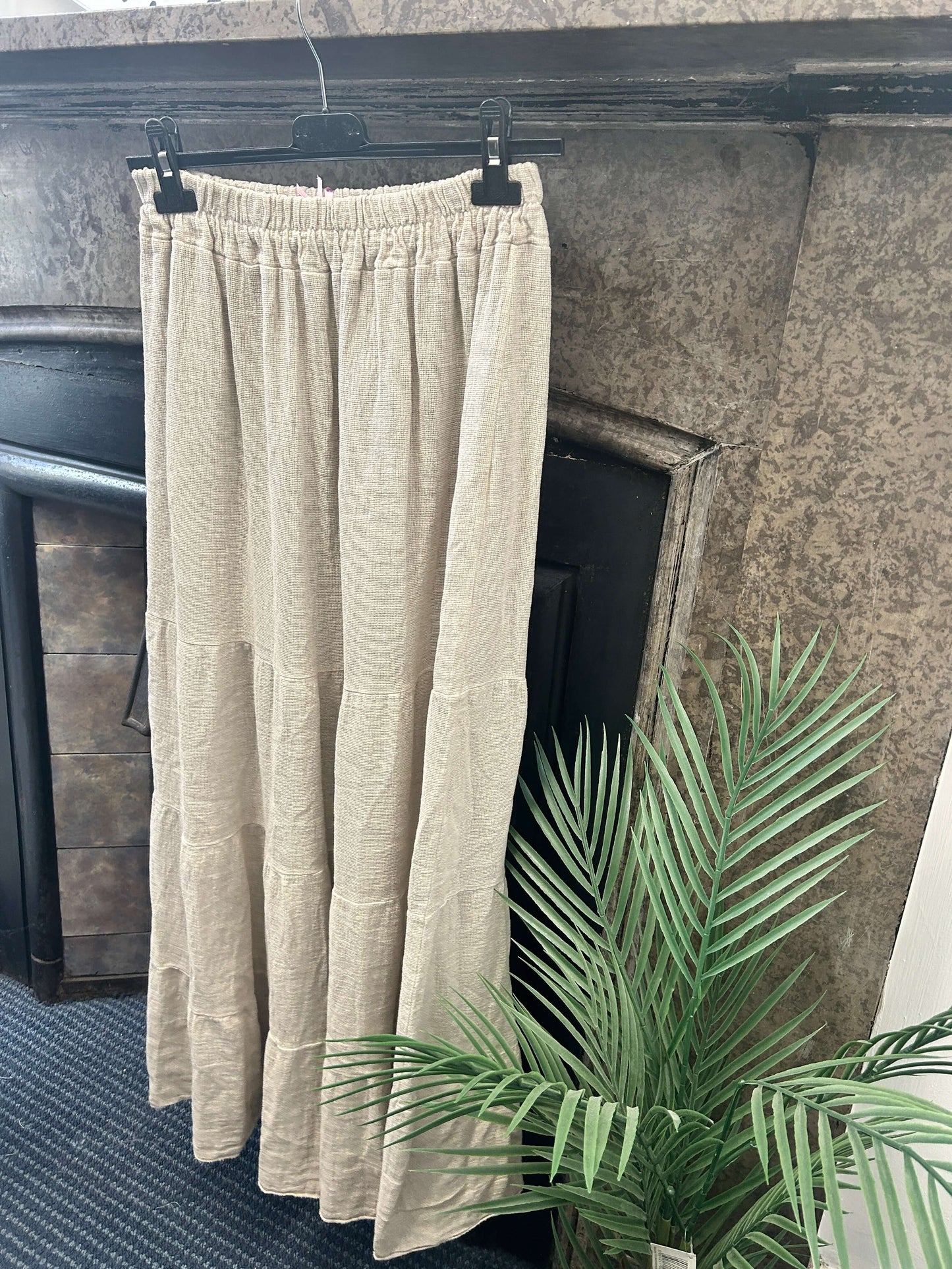 Unleash your inner fashionista with the Ariel Hessian Maxi Length Skirt. Made with a perfect blend of 50% cotton and 50% linen, this pleated skirt offers effortless comfort and style. Plus, its one size fits 8-16, ensuring a flattering fit for all body types. Get ready to turn heads wherever you go!