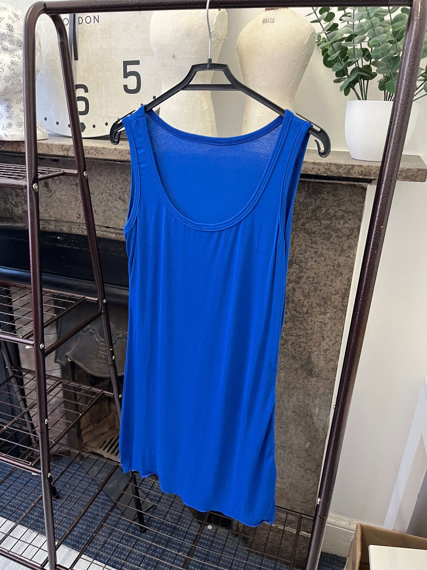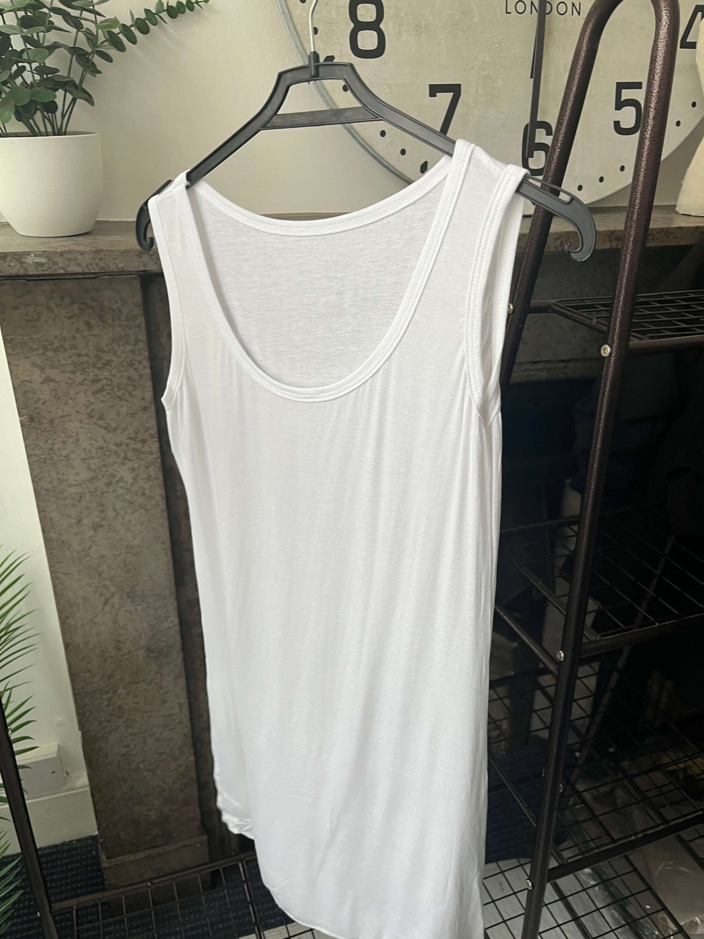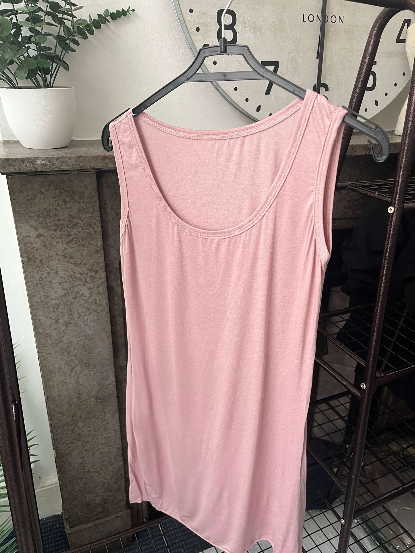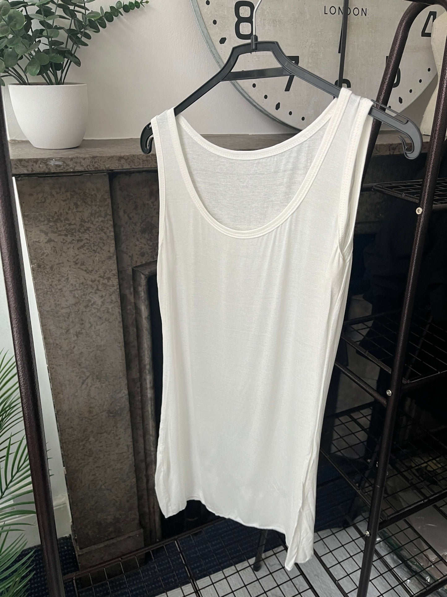 Introducing the Azalea Longline Round Neck Vest Top. Versatile and stylish, this basic scoop neck top is perfect for layering and can fit sizes 8-18. Say goodbye to struggling with finding the right size - this top has got you covered! (Literally and figuratively.)