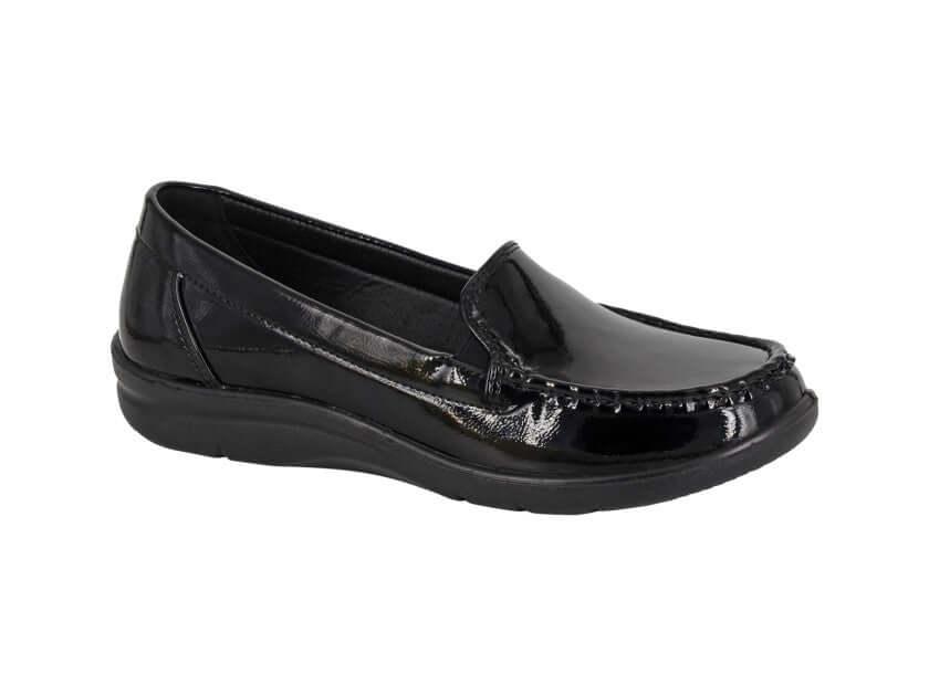 Step out in style with the Boulevard Black Patent PU Casual Shoe. Its modern and sleek design combines classic style with comfort. With a twin gusset, this shoe is easy to slip on and off. Enjoy everyday wear with its classic casual style.