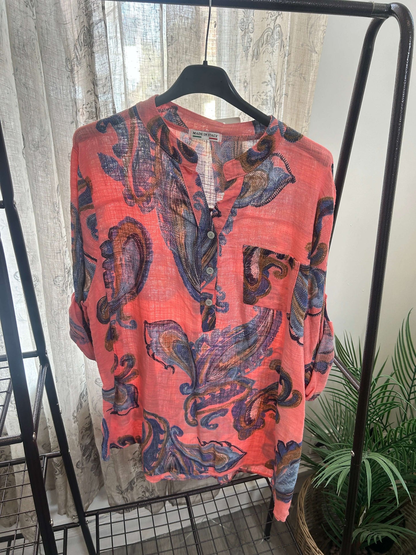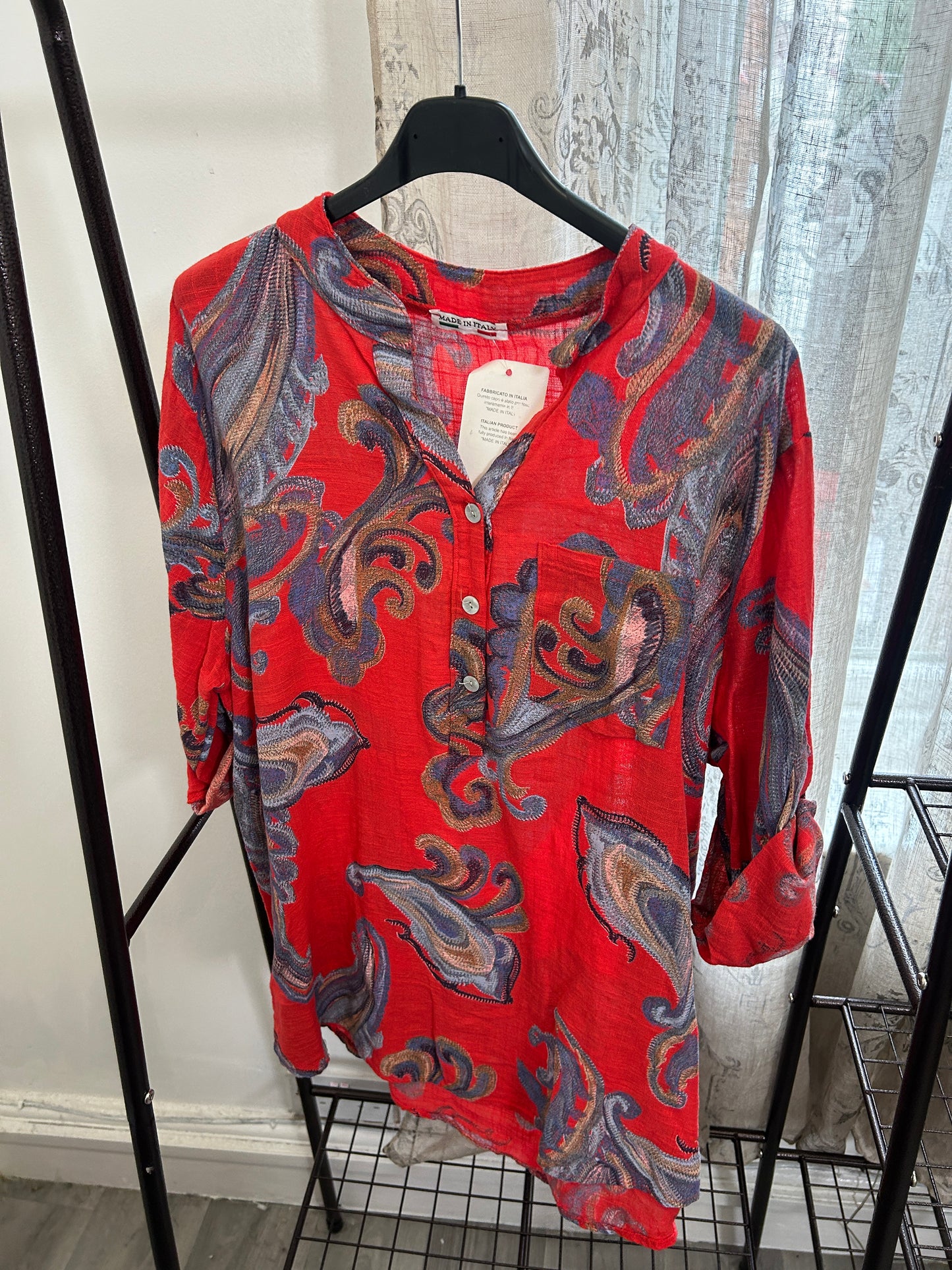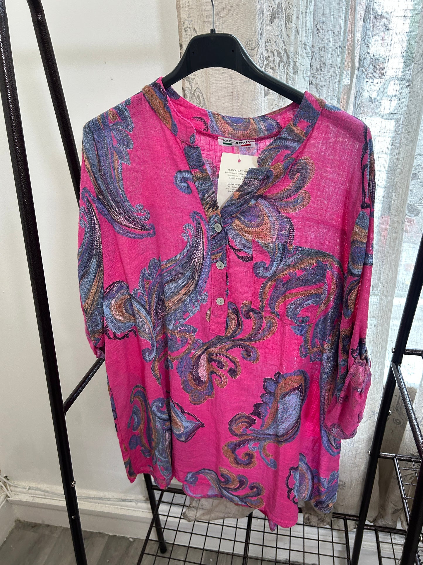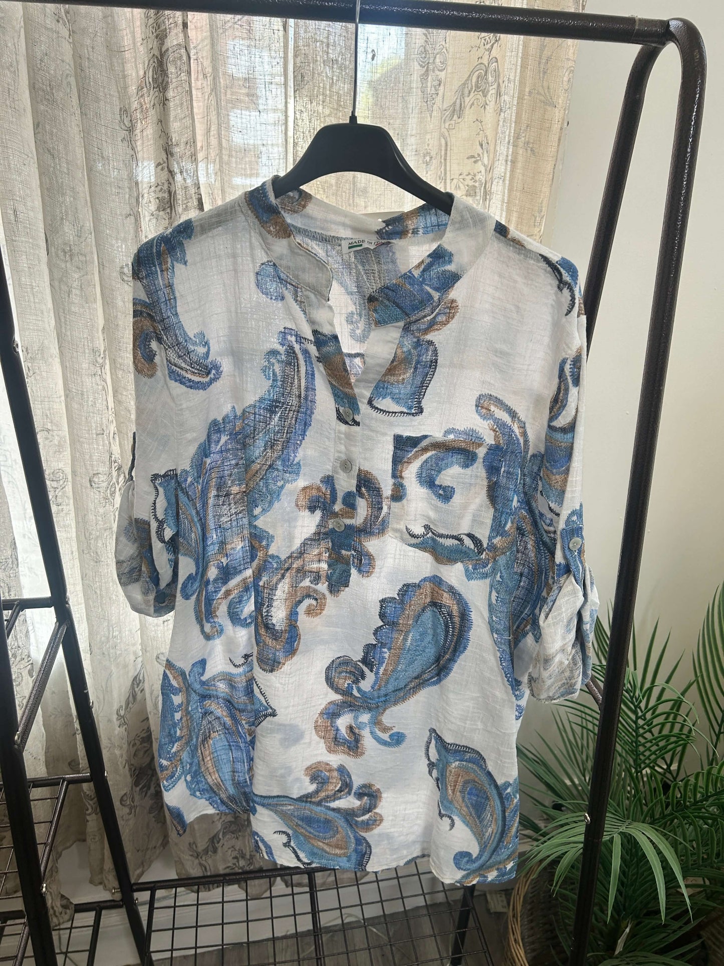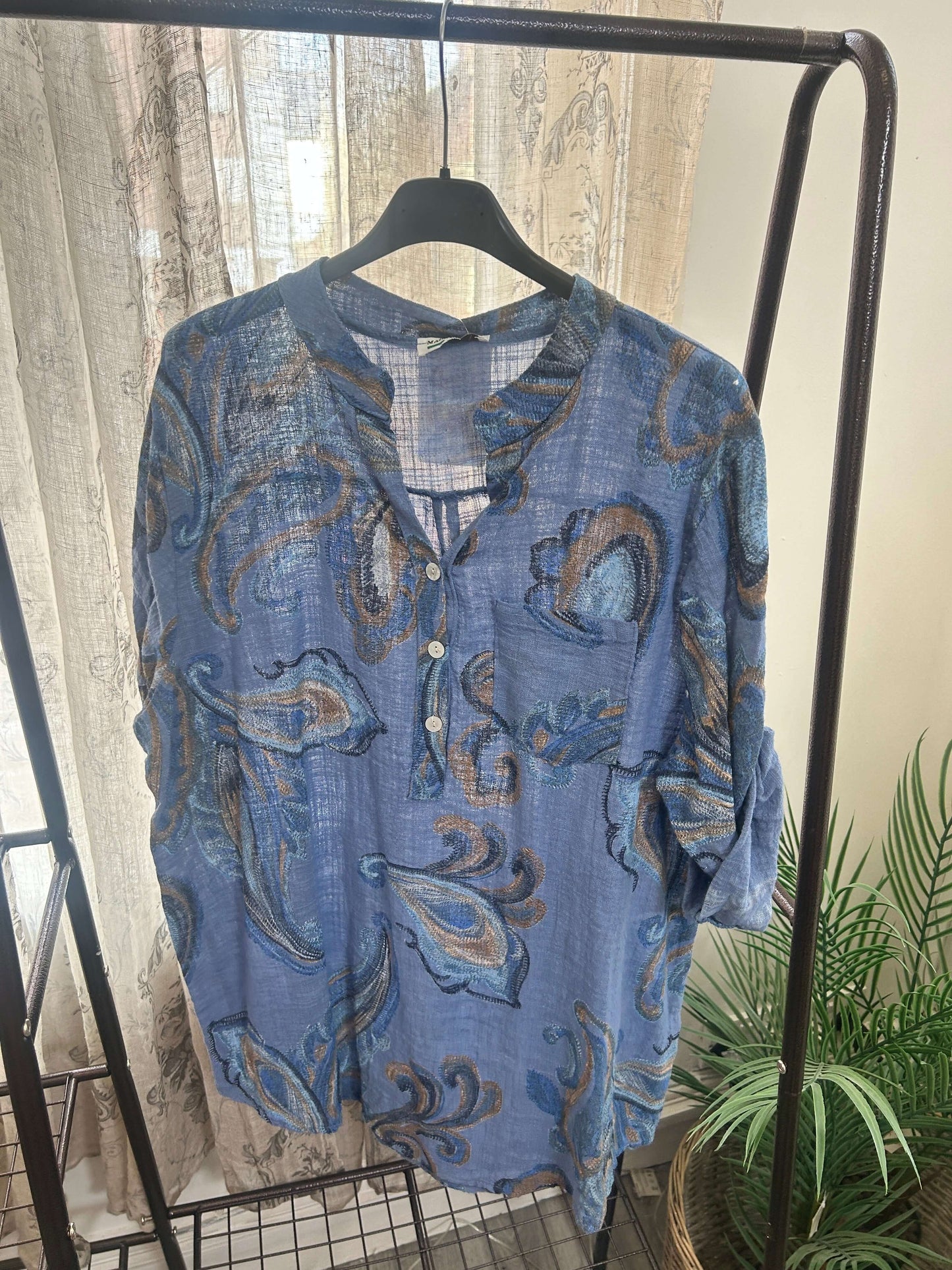 This casual 3 button blouse is an ideal wardrobe staple. Featuring a colourful paisley, it's crafted from a lightweight, breathable 70% cotton blend for ultimate comfort. The classic 3 button neckline adds a touch of sophistication to any look.