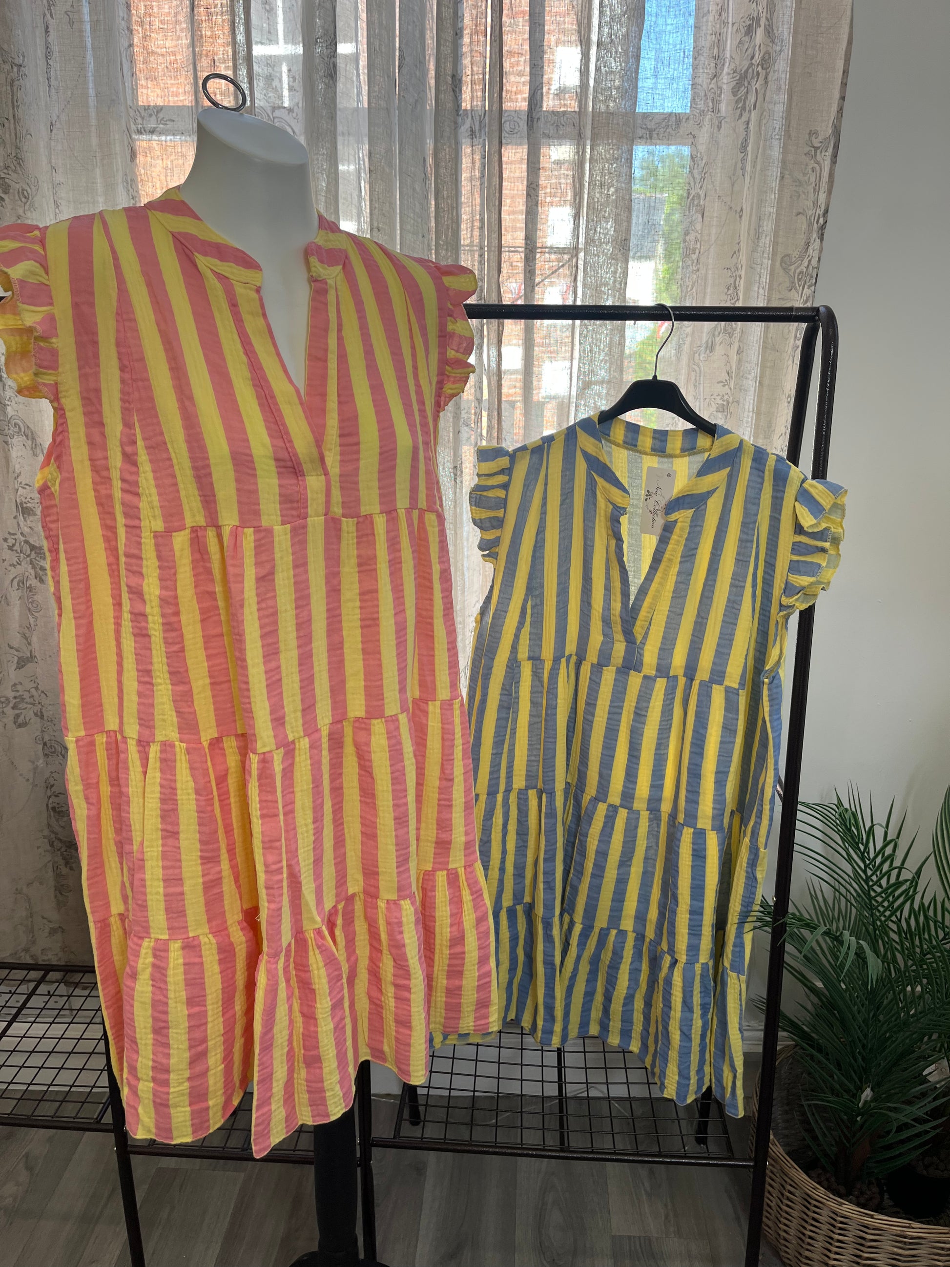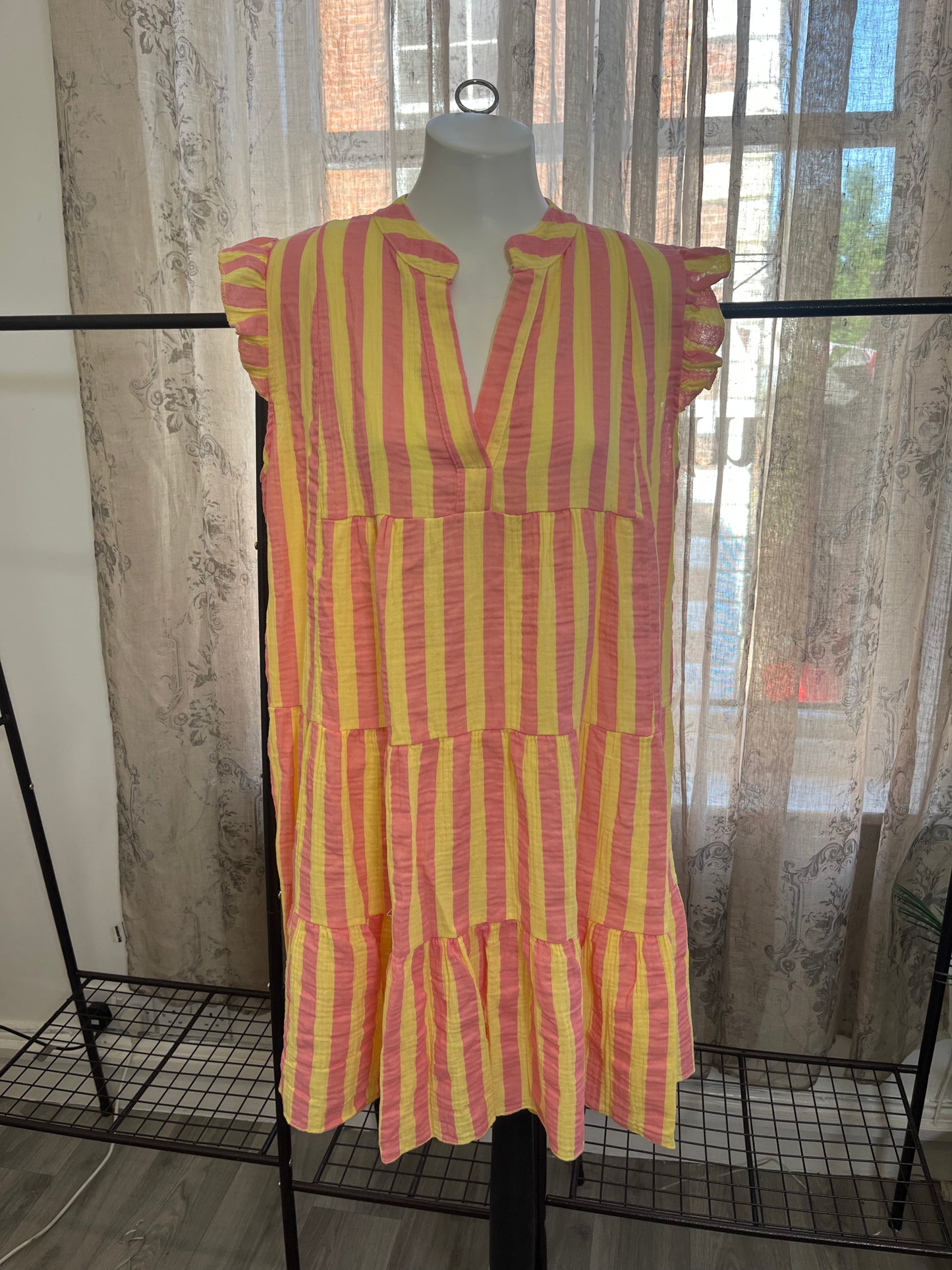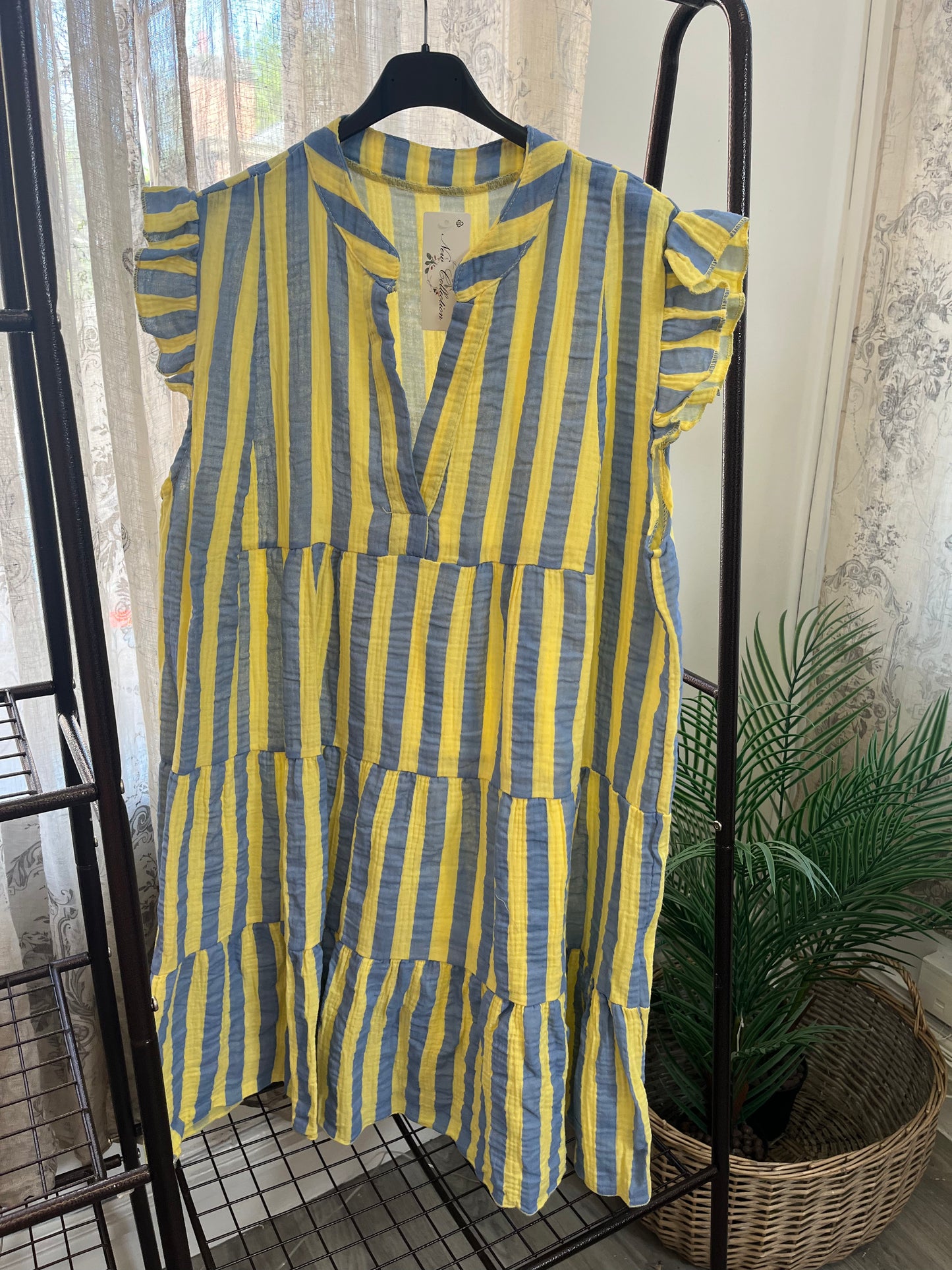 Indulge in the luxurious and exclusive style of our Cheesecloth Stripe Tiered Sundress. With a gorgeous multicoloured stripe design and a flattering tiered shape, this dress exudes sophistication. The v-neck and frill sleeves add a touch of elegance, making it the perfect choice for any occasion.