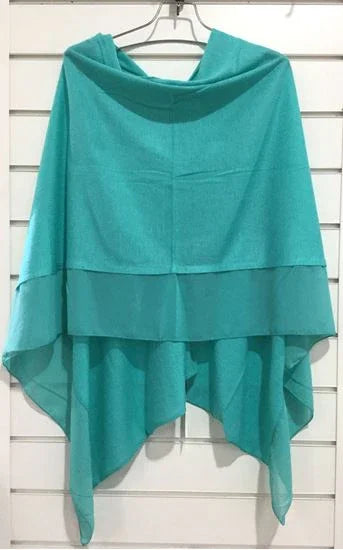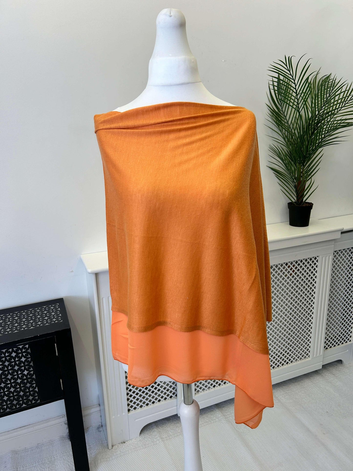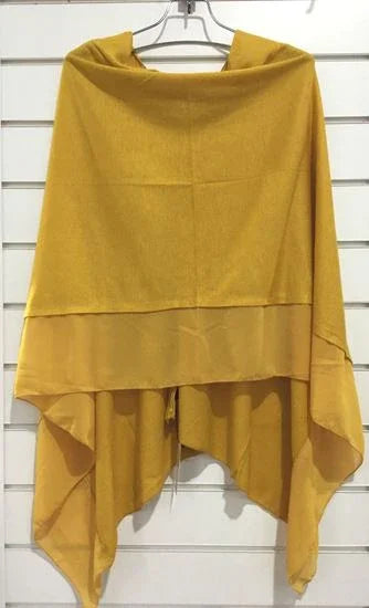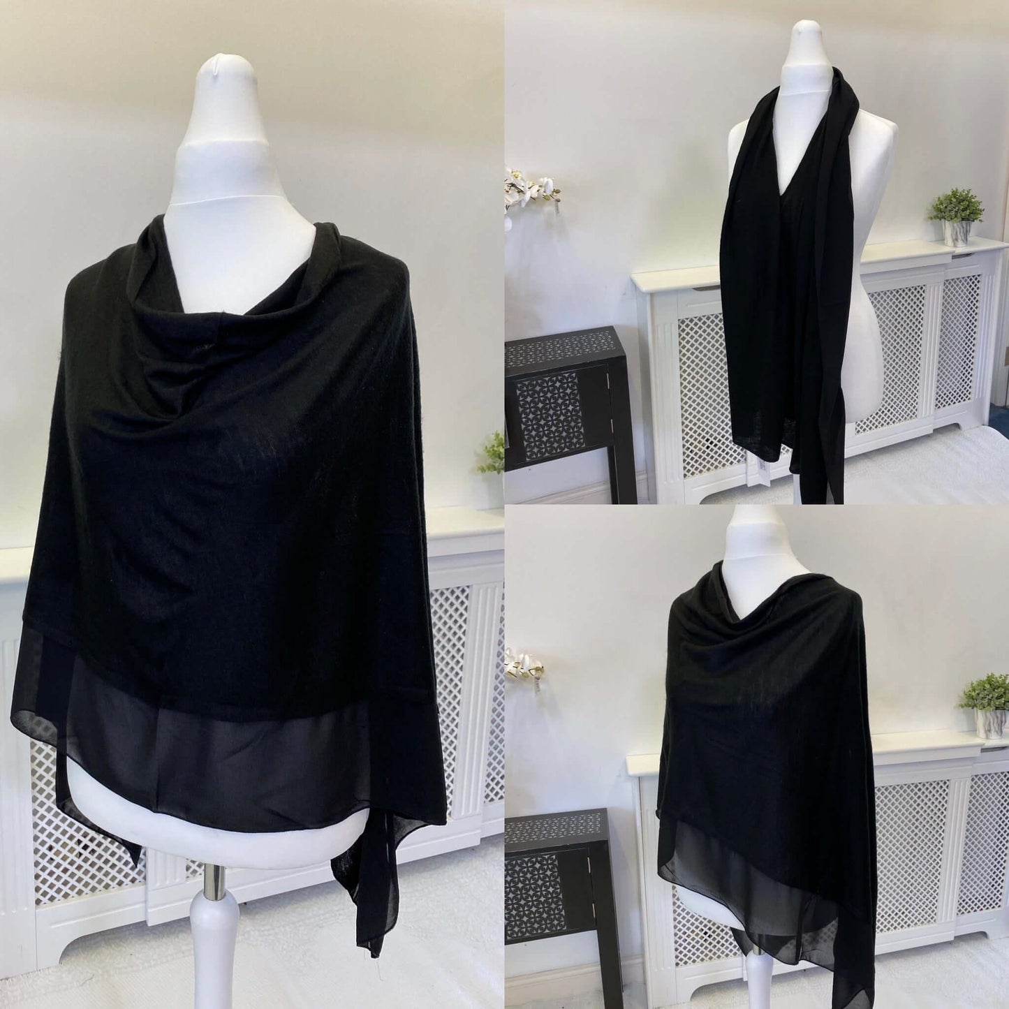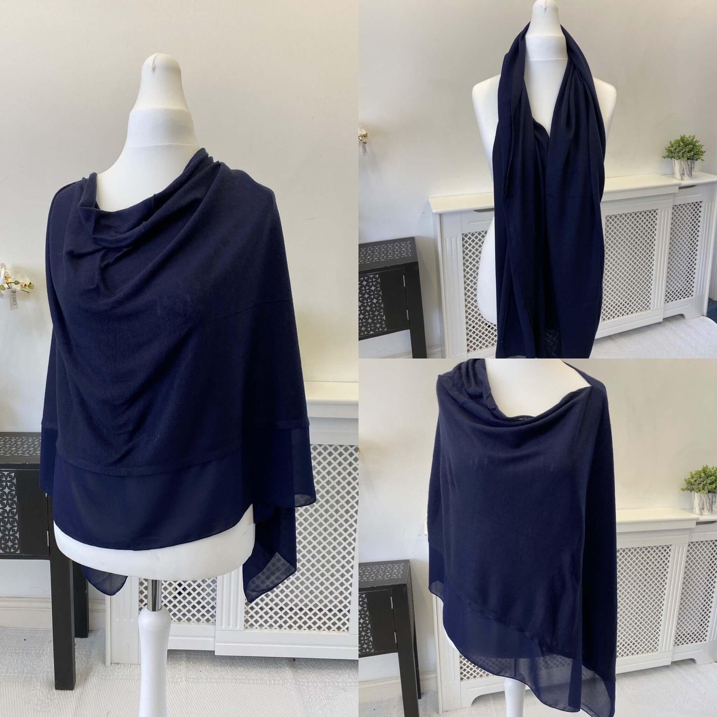 Elegant Edge This sophisticated poncho is crafted from 50% wool and designed to provide a timelessly elegant look. The luxurious chiffon edging adds a touch of style, while the 3 in 1 design makes this garment a versatile layering piece. Keep warm and stylish in this classic ladies poncho.