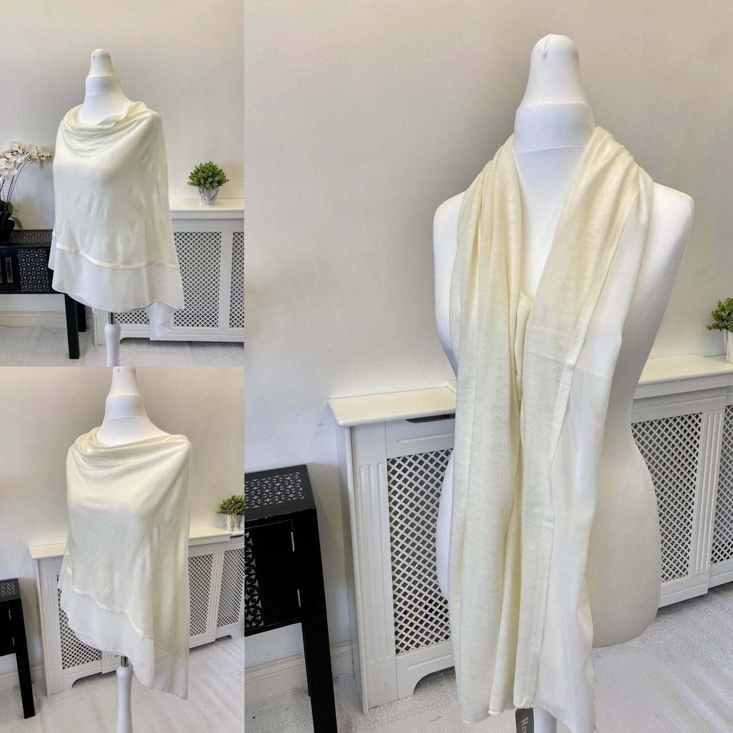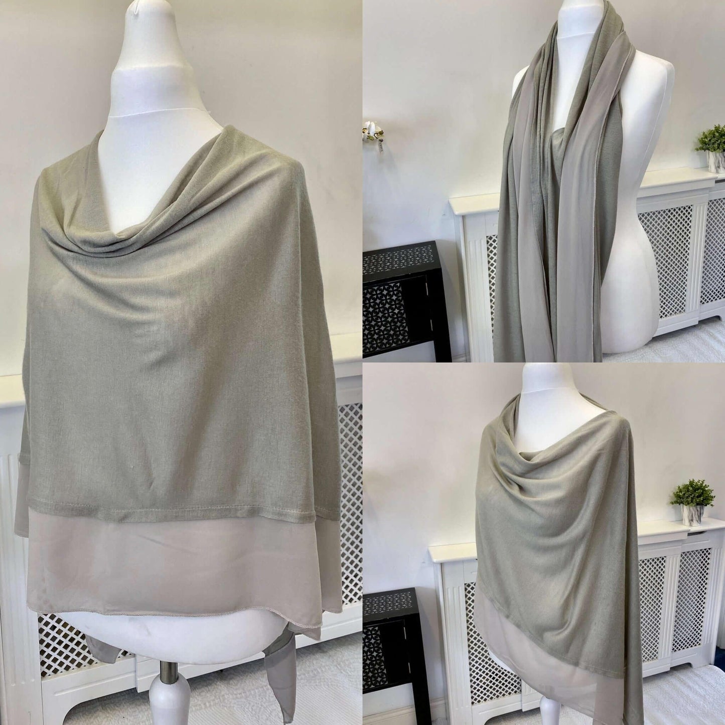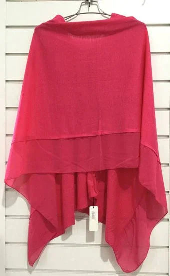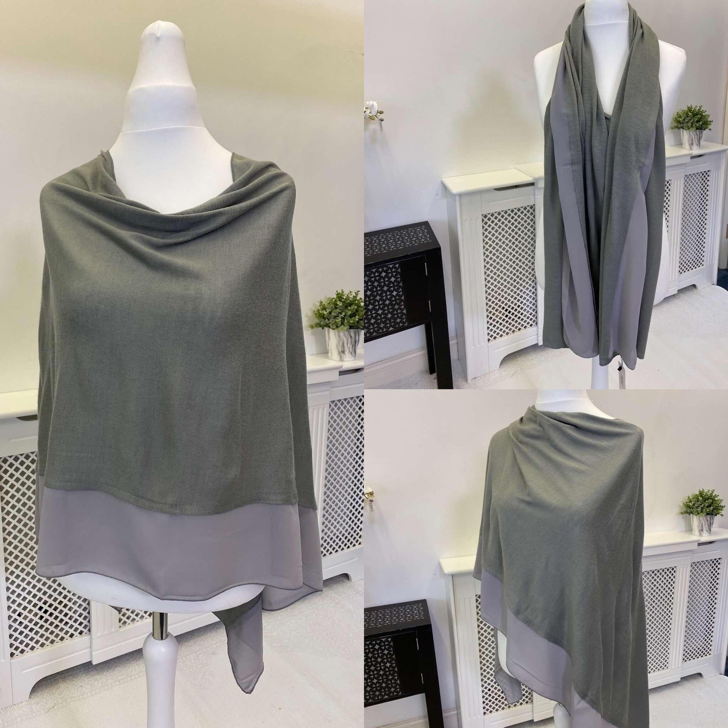 Elegant Edge This sophisticated poncho is crafted from 50% wool and designed to provide a timelessly elegant look. The luxurious chiffon edging adds a touch of style, while the 3 in 1 design makes this garment a versatile layering piece. Keep warm and stylish in this classic ladies poncho.