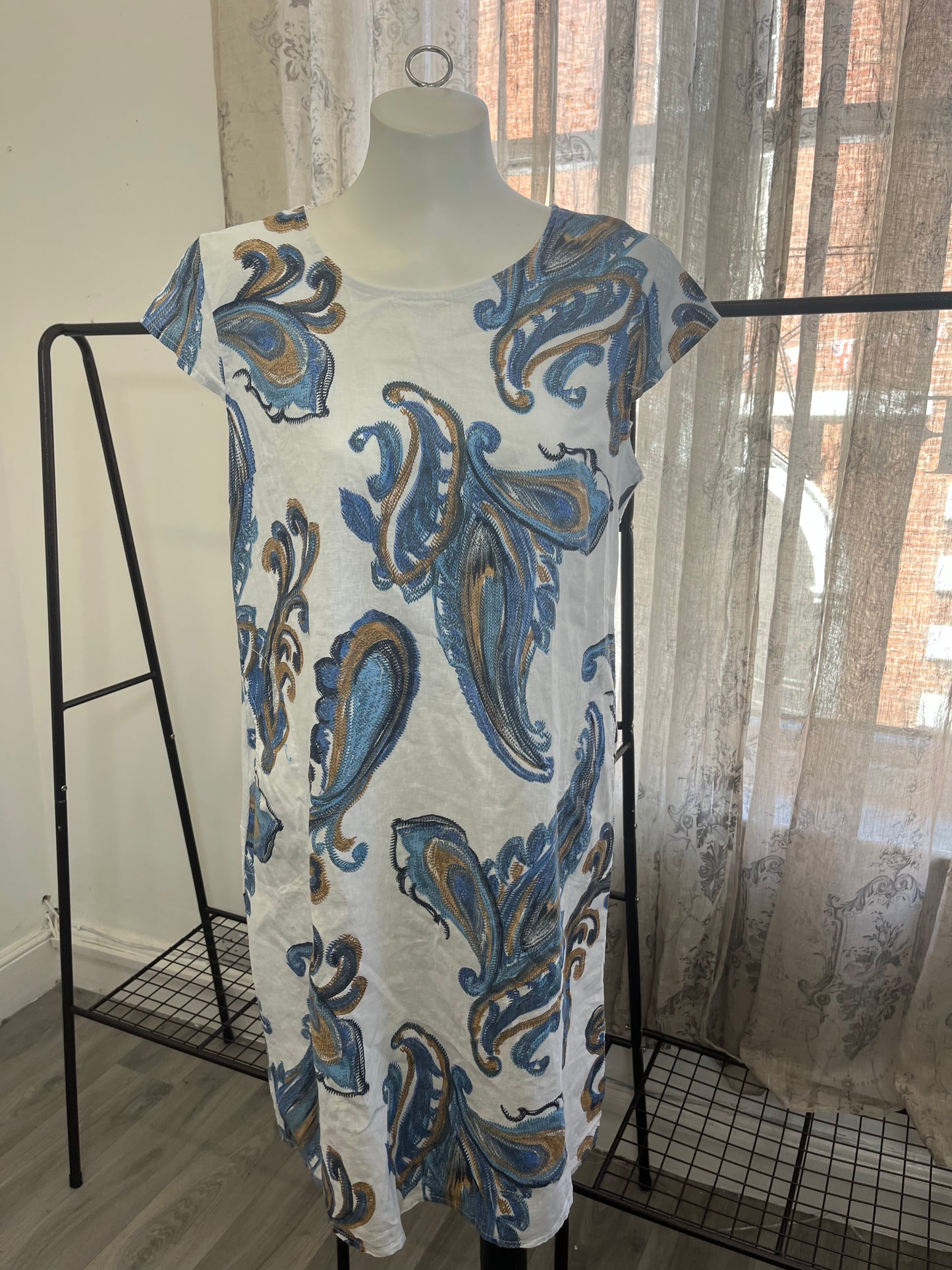 Enjoy breathable comfort all summer long with the Paisley Side Panel Shift Dress. Designed for warm weather, its lightweight fabric and relaxed fit keep you feeling fresh and at ease. The intricate paisley side panels add a stylish, eye-catching detail, making this dress perfect for sunny days and casual outings. Stay cool and effortlessly chic wherever you go.