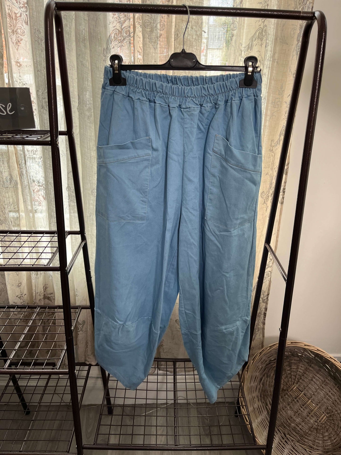 Update your wardrobe with these funky cropped trousers. Featuring a unique parachute shape and large pockets, these trousers are perfect for those who want to stand out from the crowd. Plus, the elasticated waist ensures a comfortable fit for sizes 8-14. Get ready to make a statement!
