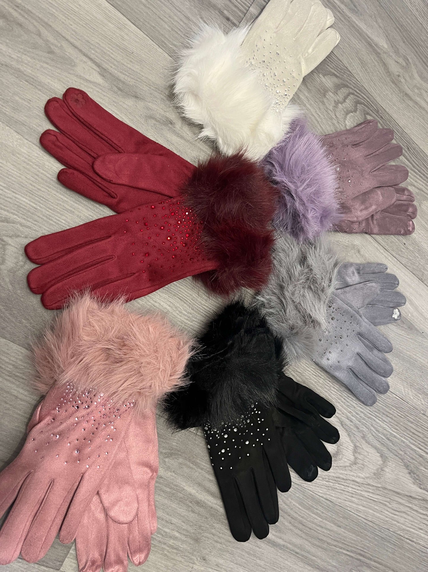 Stay warm and cozy the whole winter through with these stylish Diamonte Faux Fur Gloves. Be fashion-forward this season with Faux Fur! Can be used with touch screen devices