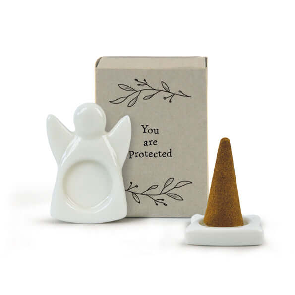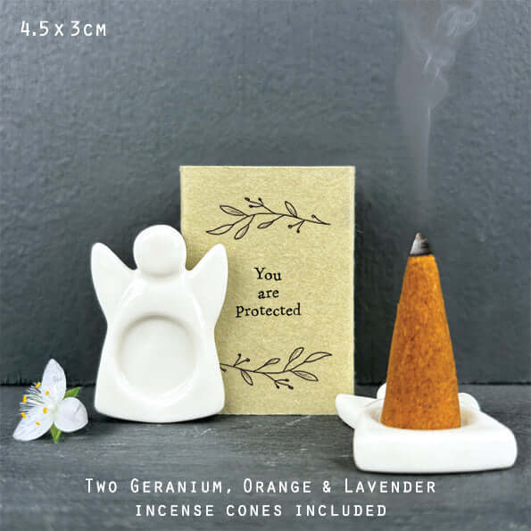 Light up your space with love using the East of India Matchbox Incense Cone and its angel-shaped holder. Let the sweet scents fill the air while the delicate holder adds a touch of romance to your decor. Perfect for setting the mood or as a thoughtful gift for someone special!