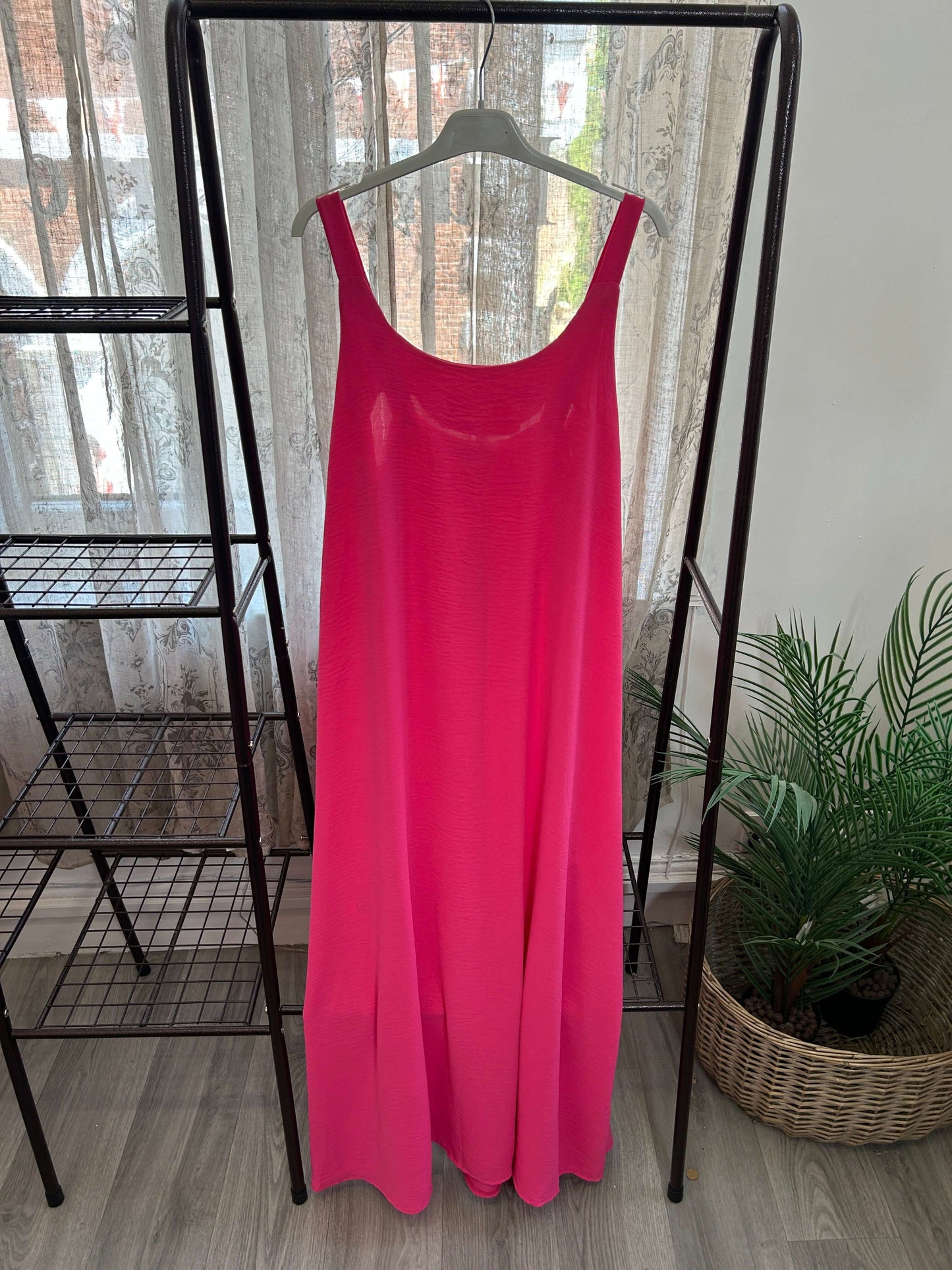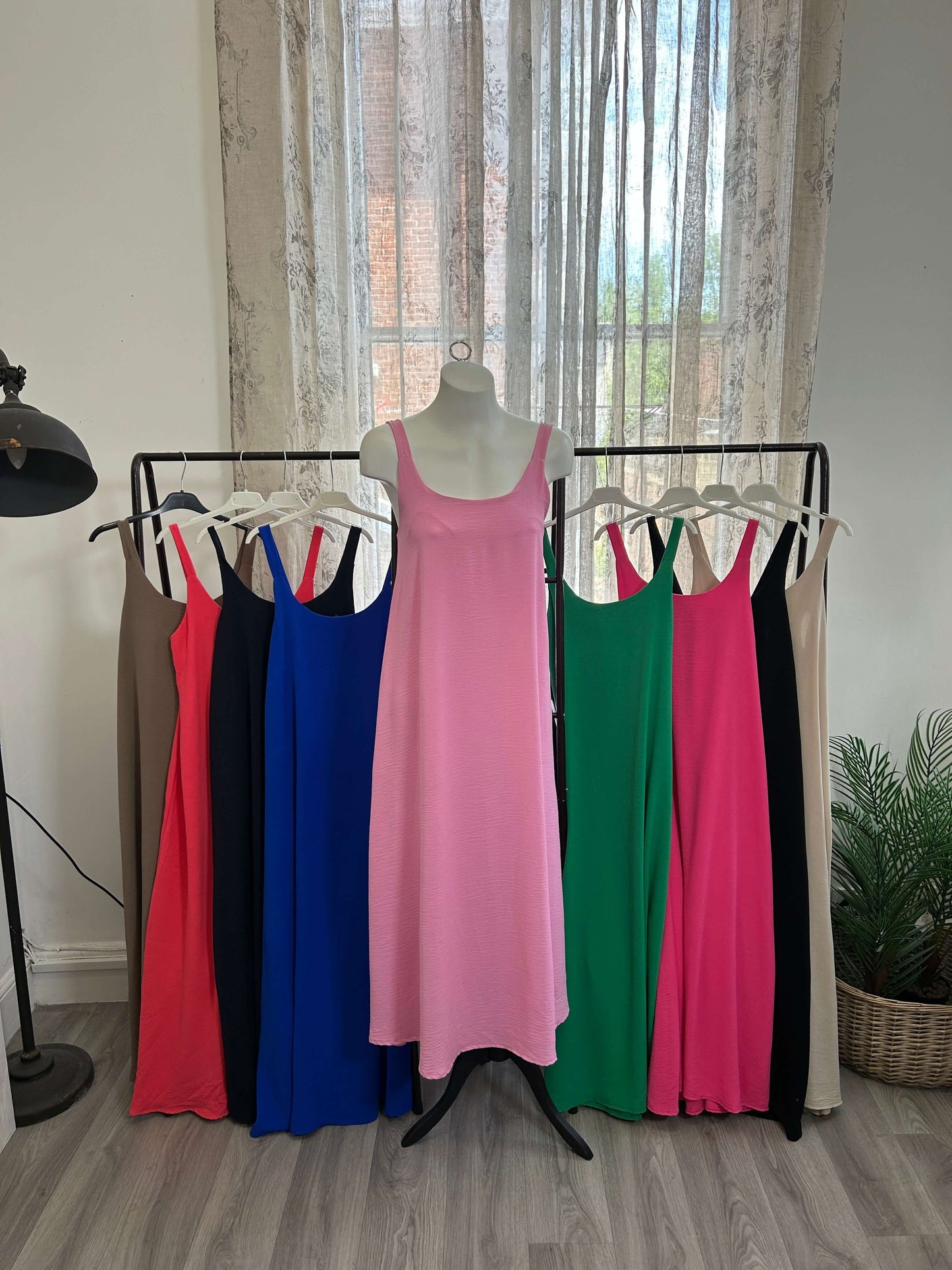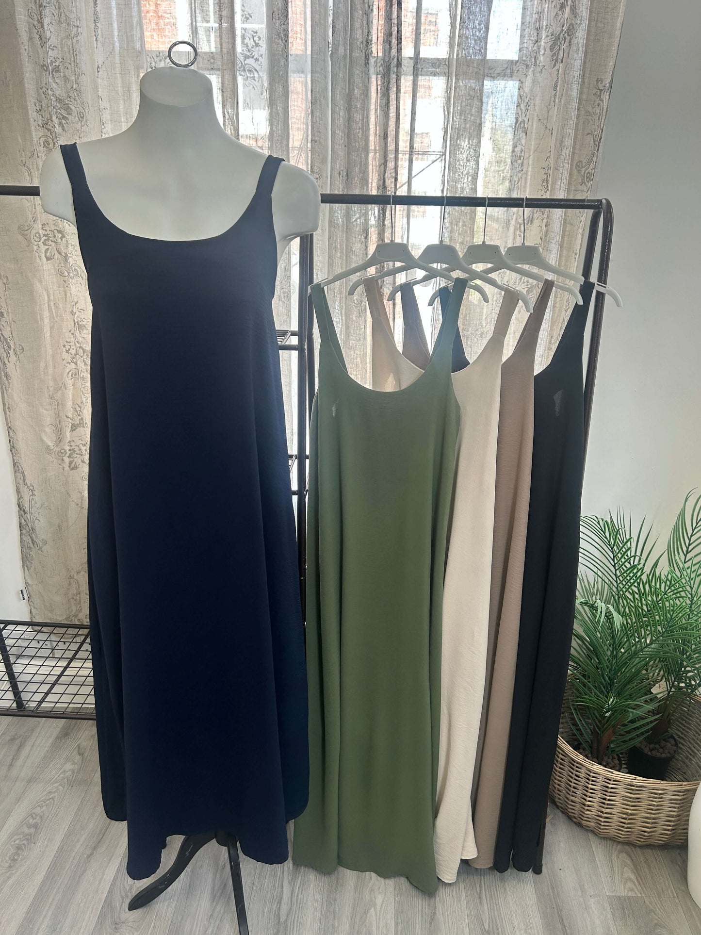The Floaty Maxi Sundress is a stylish and comfortable choice for any occasion. With a round neck and elasticated back, this dress provides a flattering fit for all body types. Stay cool and chic during hot summer days with this plain and effortless maxi sundress.