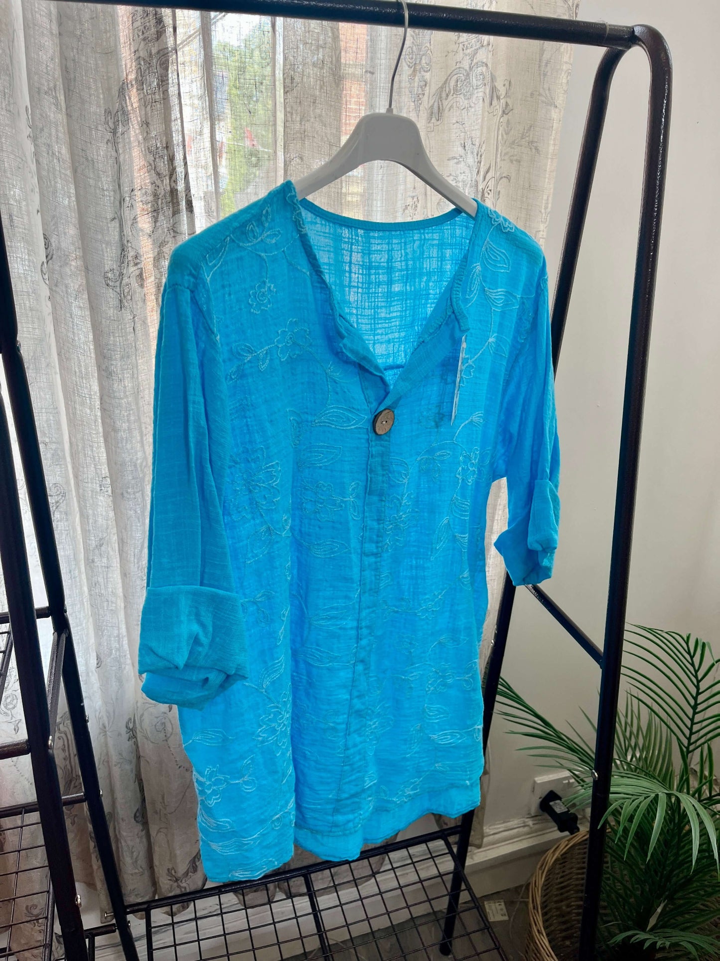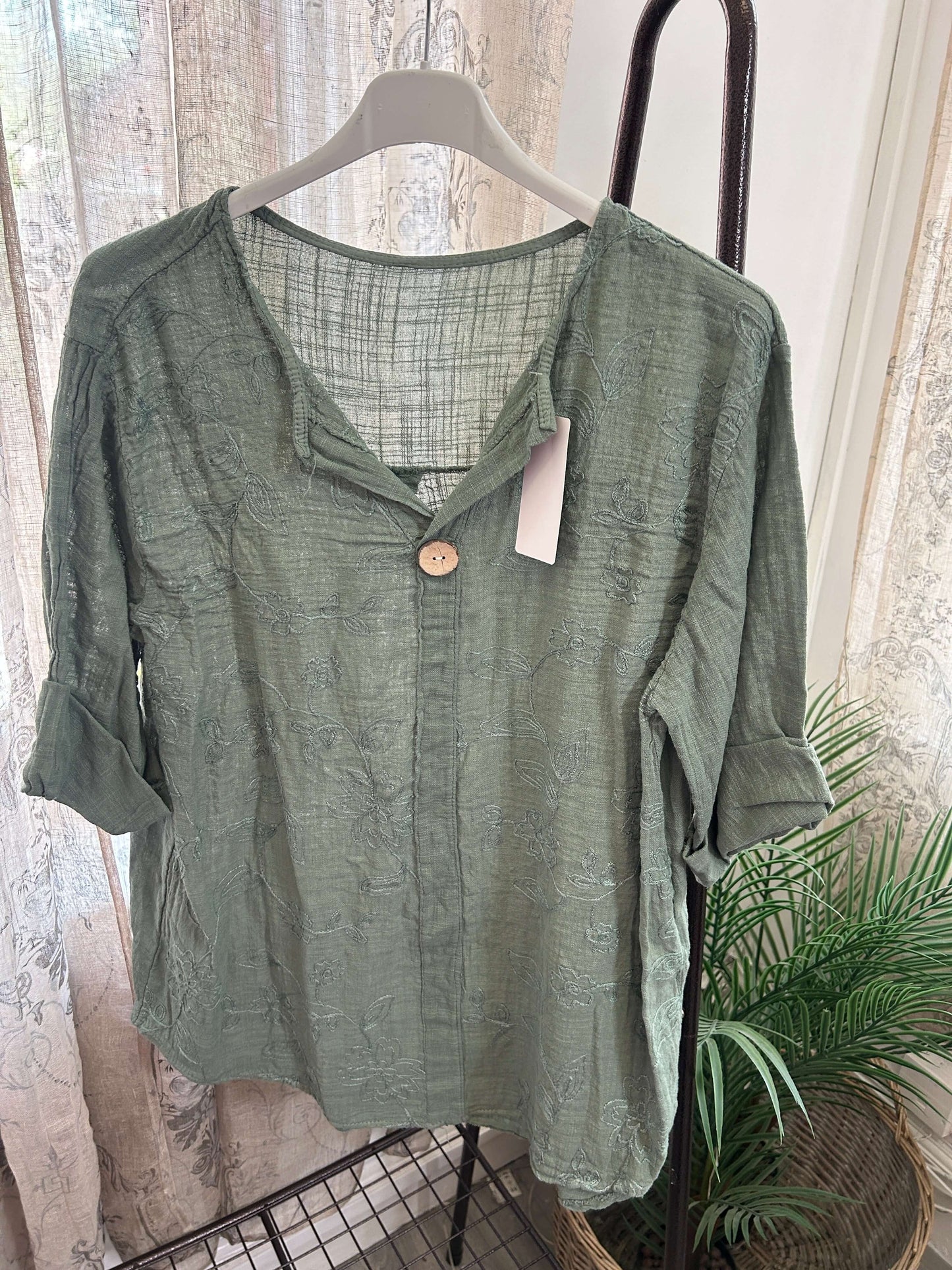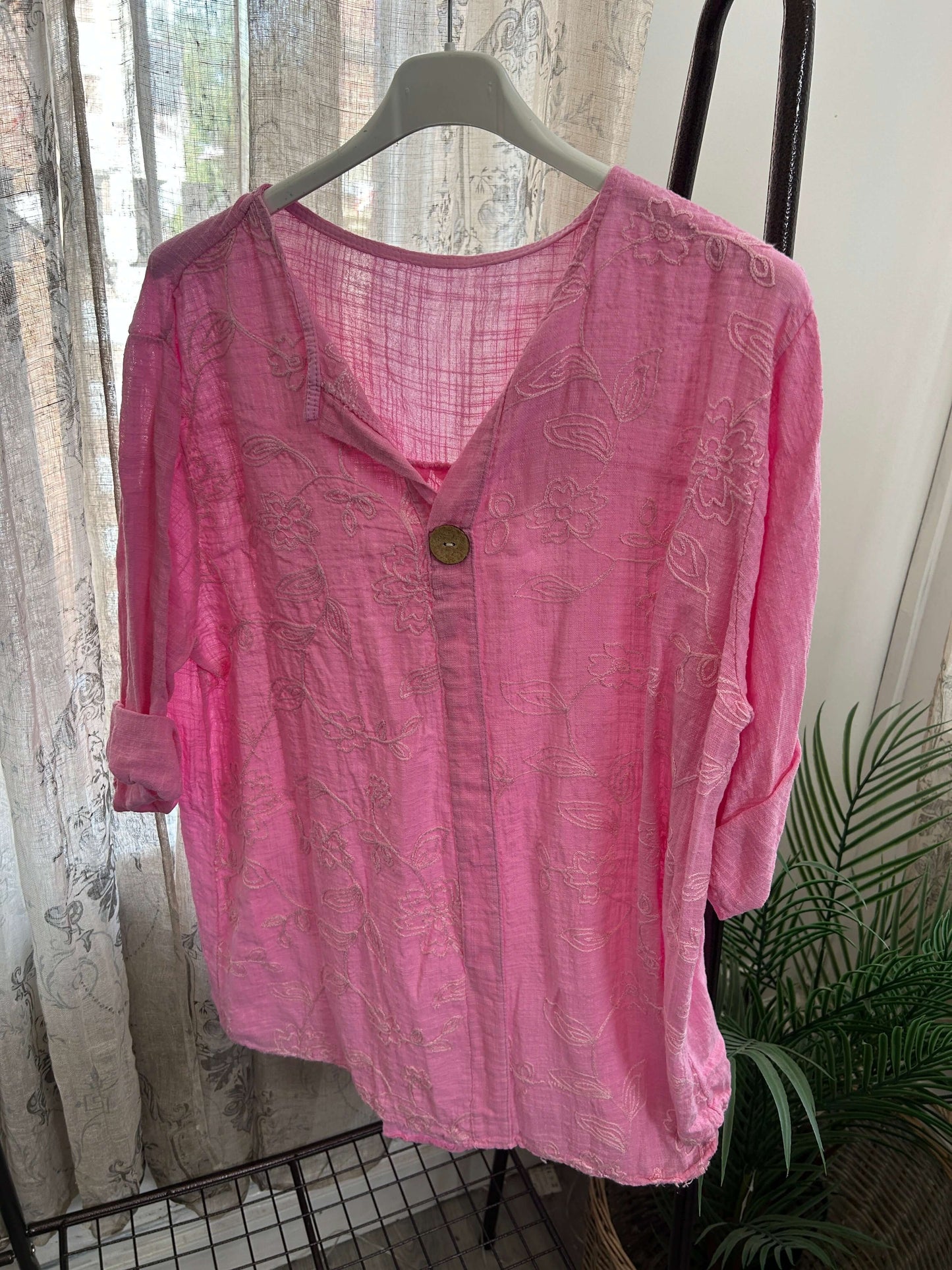 Floral Embroidered One Button Boxy Slouchy Blouse