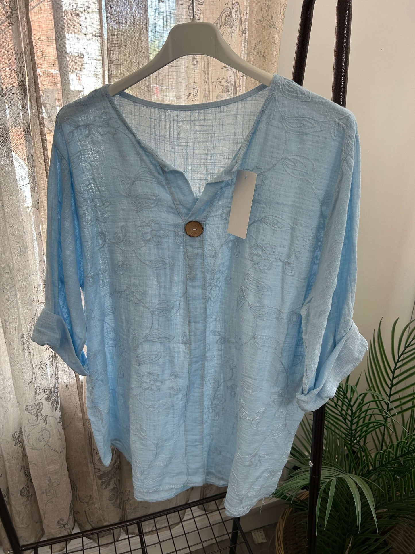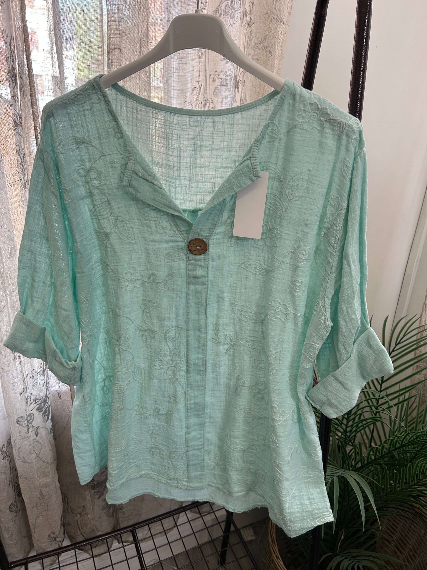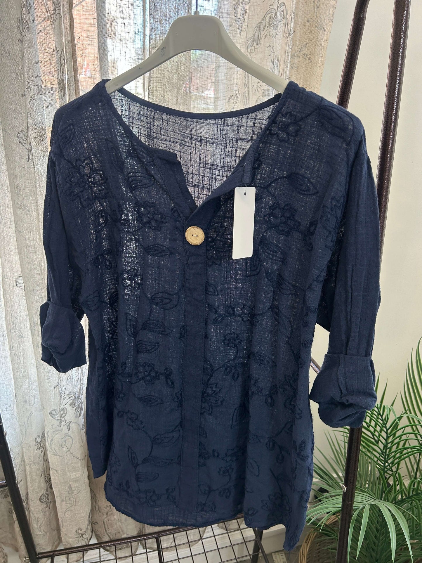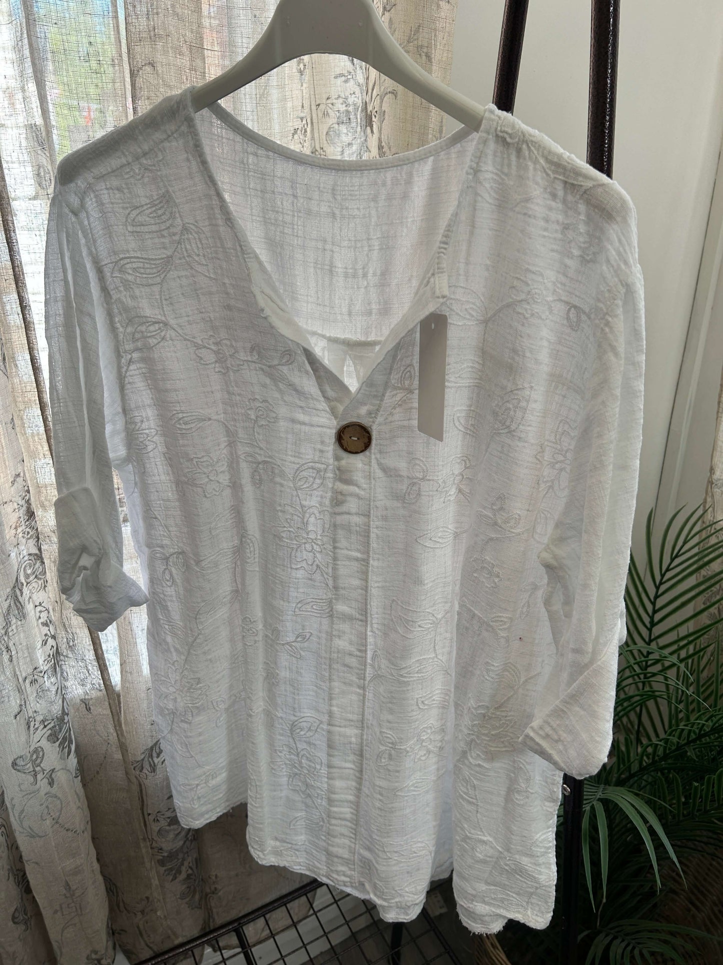 Floral Embroidered One Button Boxy Slouchy Blouse