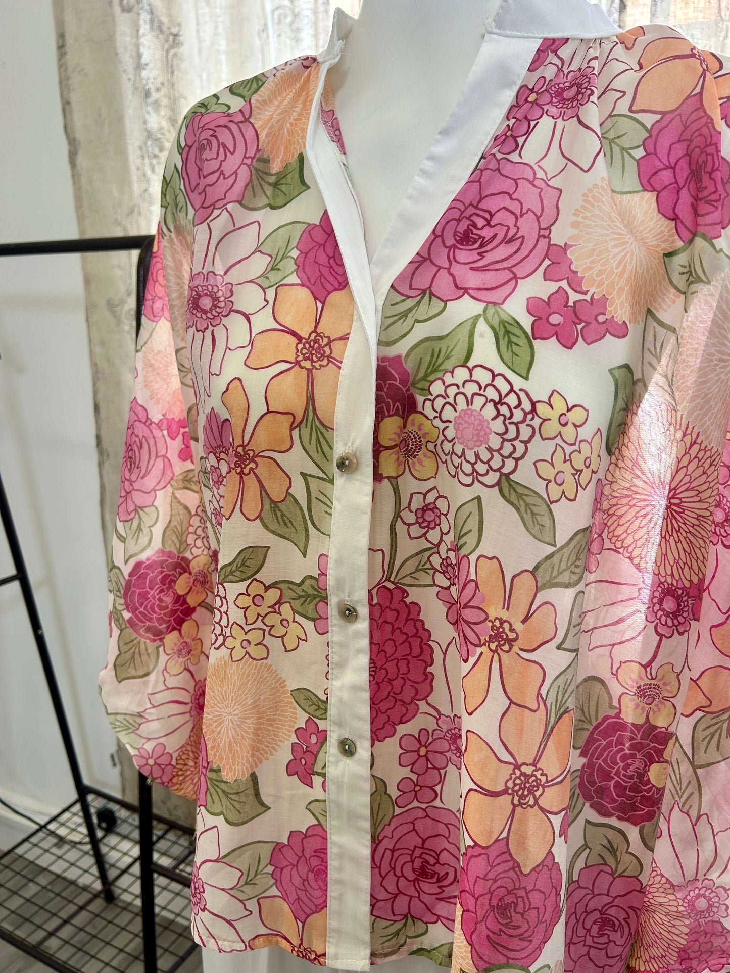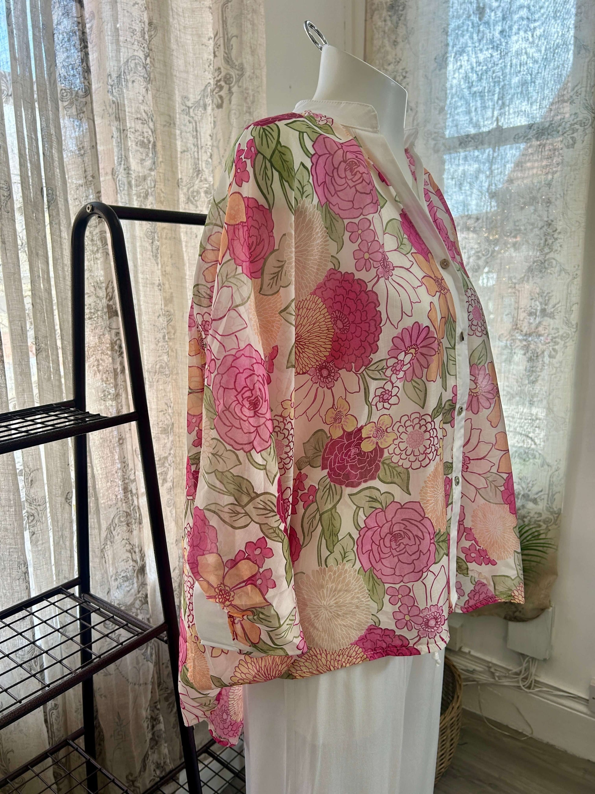 Indulge in luxury with our Floral Floaty Batwing Blouse. Crafted from sheer tencil fabric, this blouse is perfect for layering while also giving a delicate touch. The batwing bubble sleeves add a touch of elegance, making you the center of attention. The longer back adds a unique silhouette to your look.