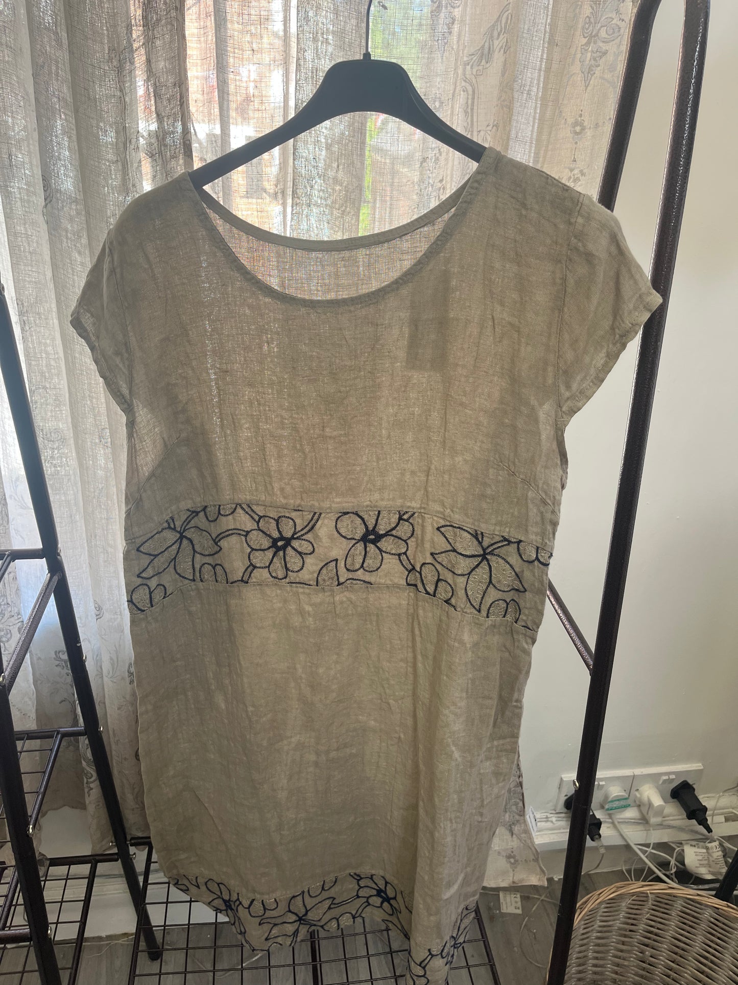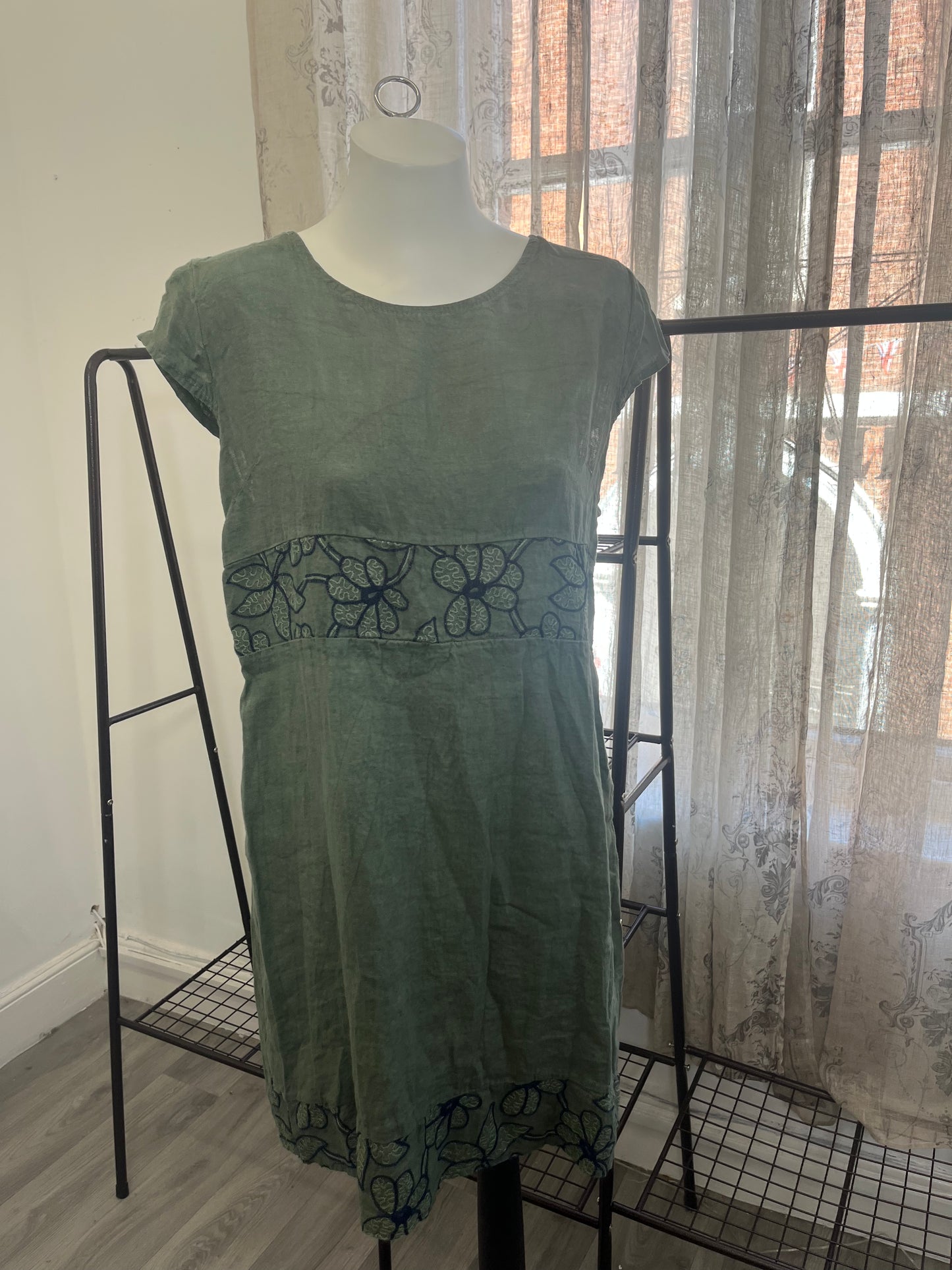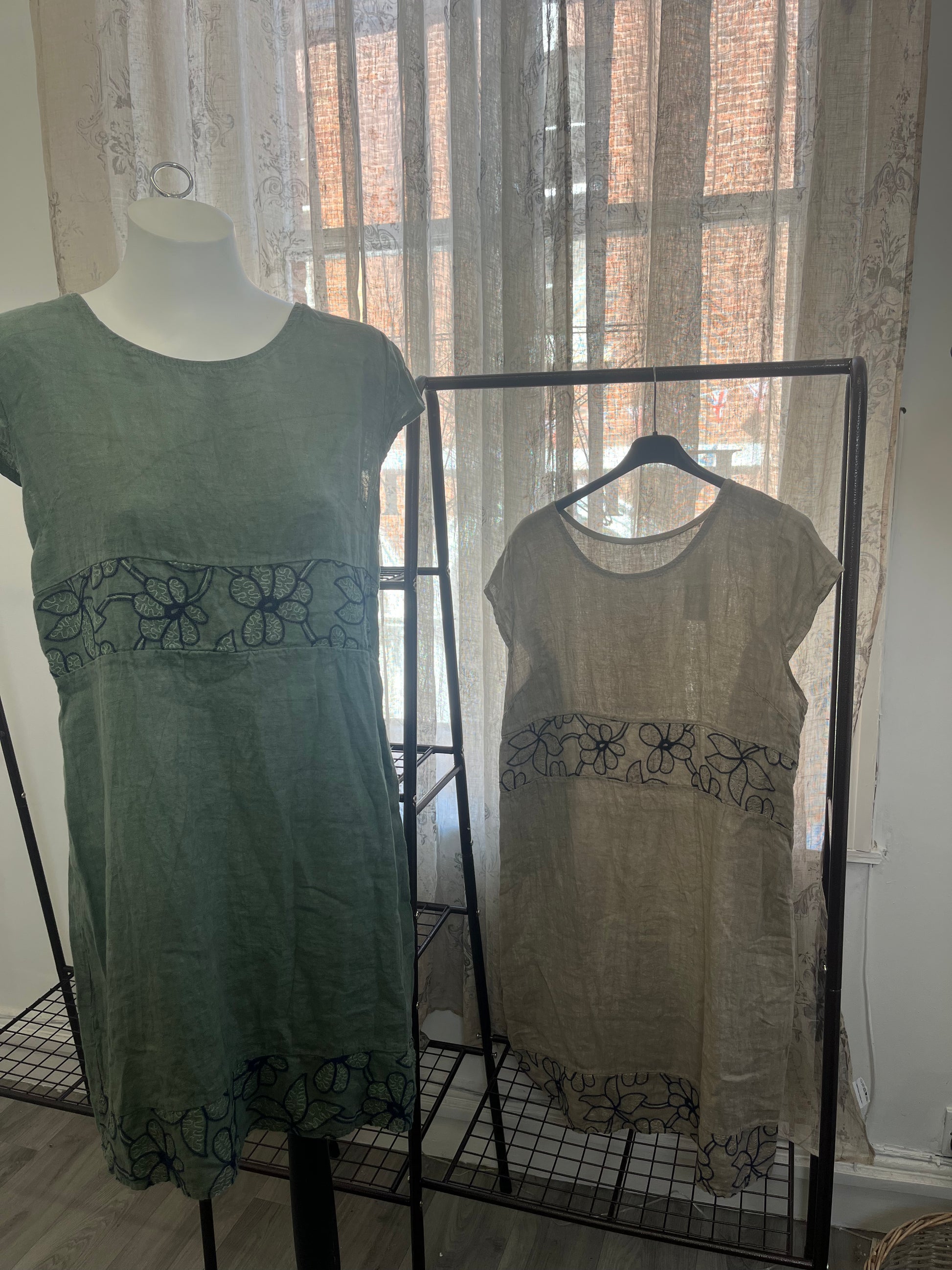 Experience ultimate comfort with the Flower Detail Side Panel Shift Dress crafted from breathable linen. Its relaxed silhouette and soft fabric make it perfect for warm days, while the delicate flower details add a charming, stylish touch. Ideal for casual wear or summer gatherings, this dress keeps you feeling fresh and looking effortlessly elegant.