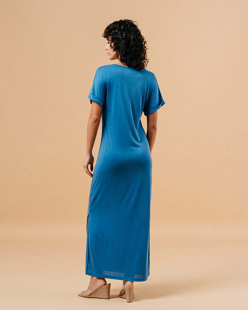 Grace & Mila - Margaux V Neck Bleu Long Dress