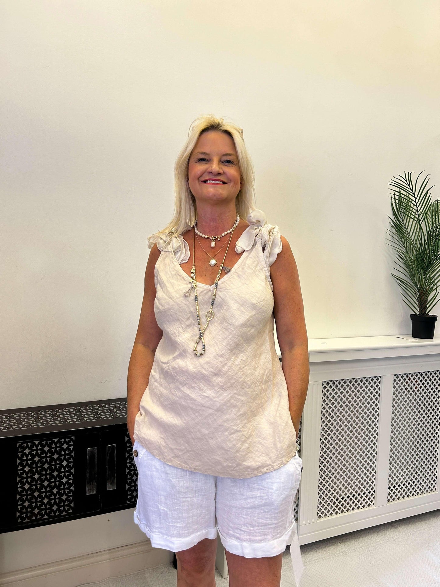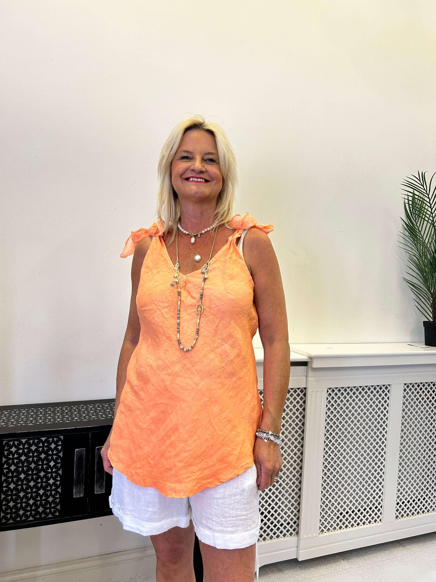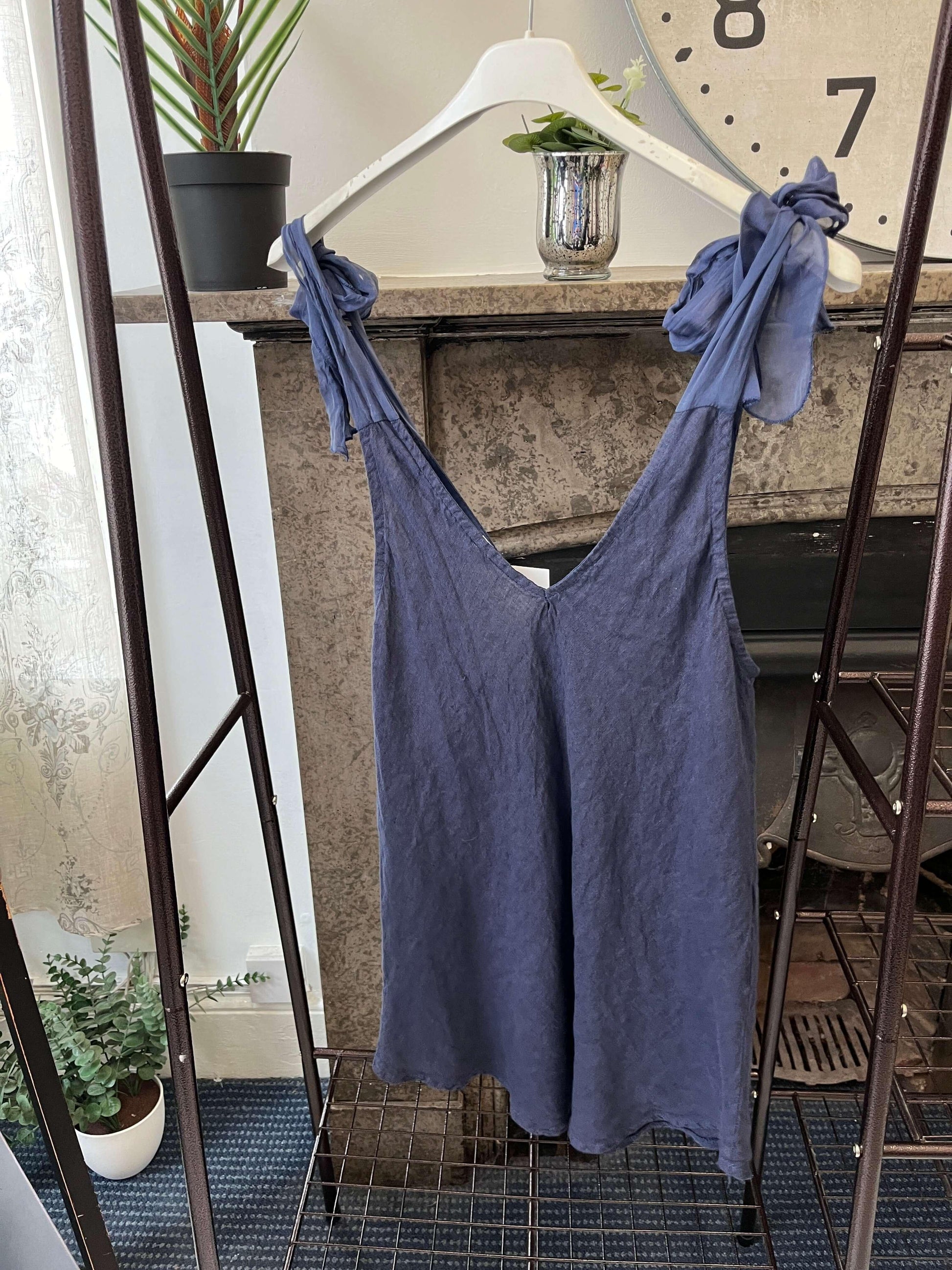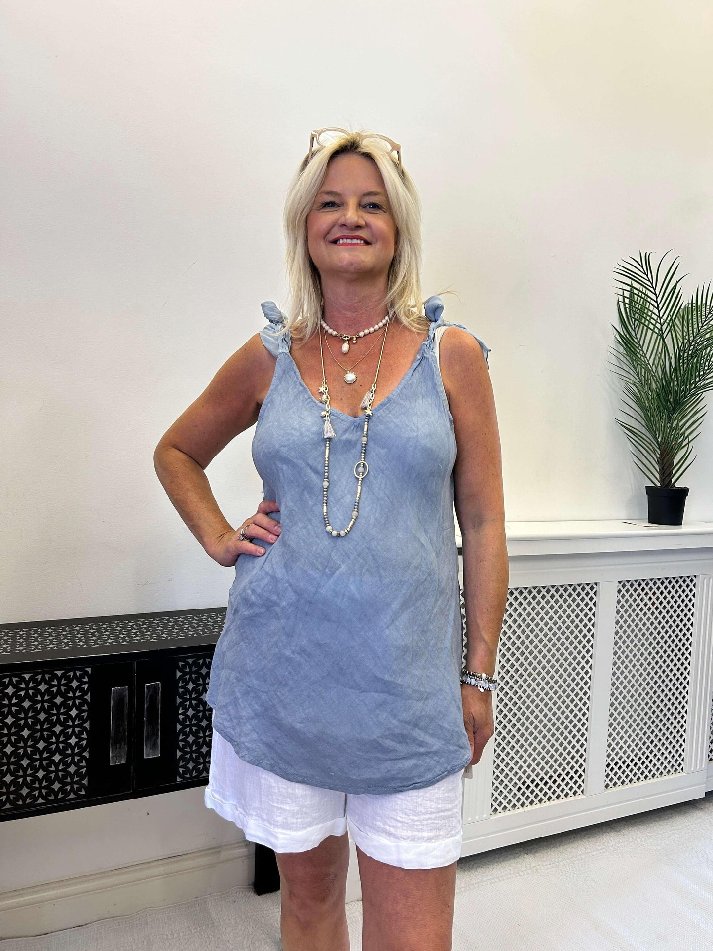 Handkerchief Hem Cotton Vest Top with Silky Tie Straps