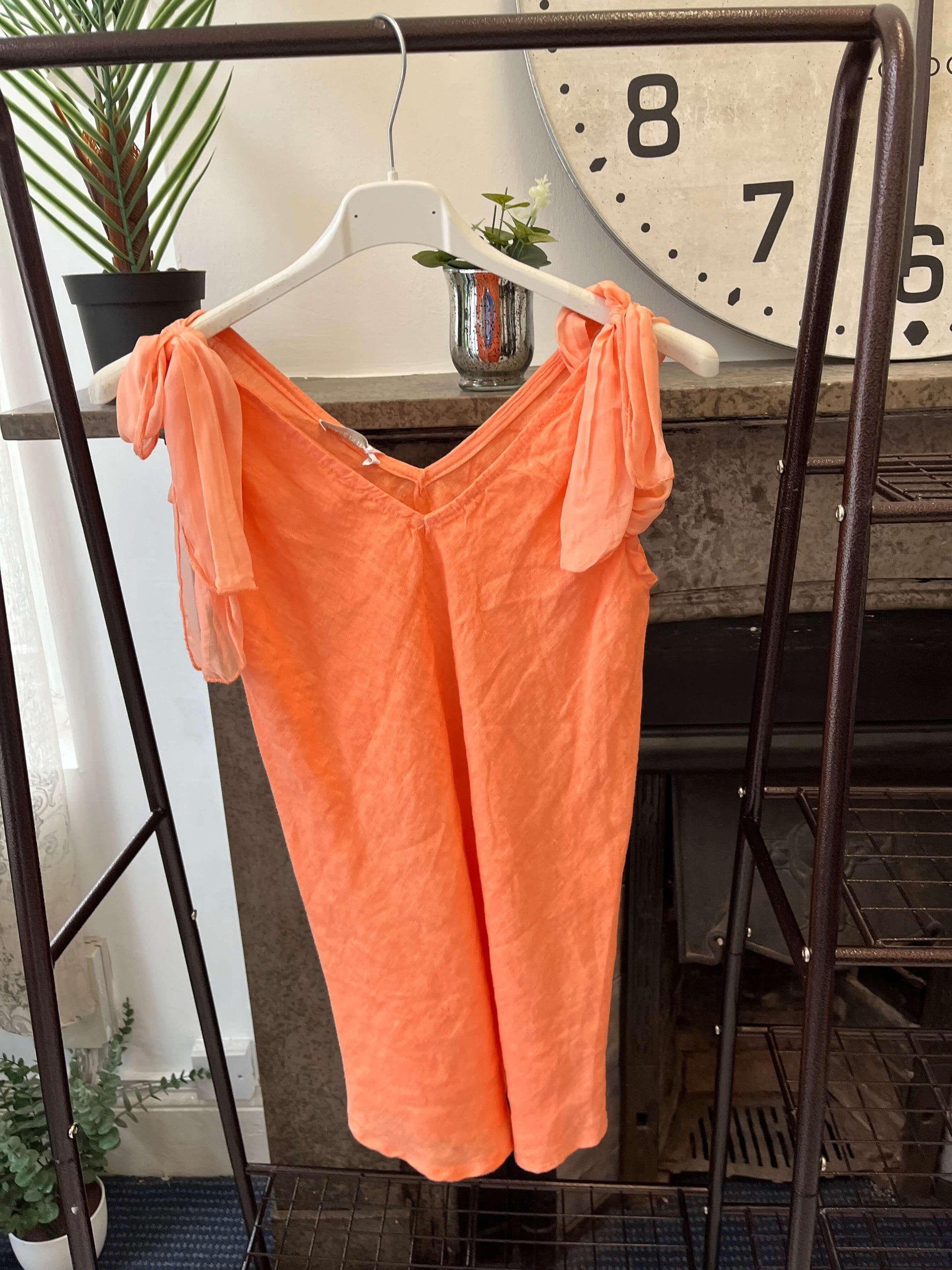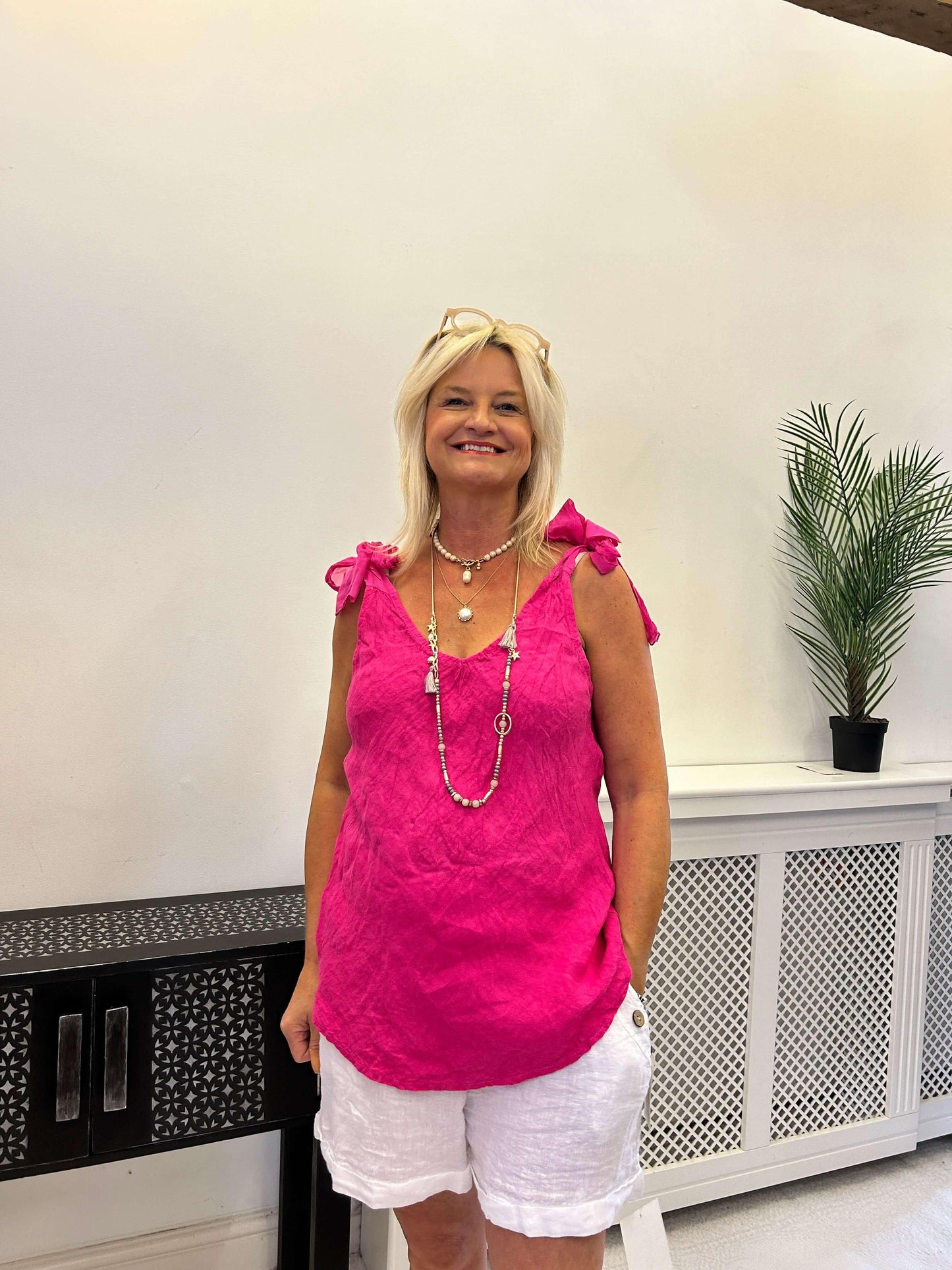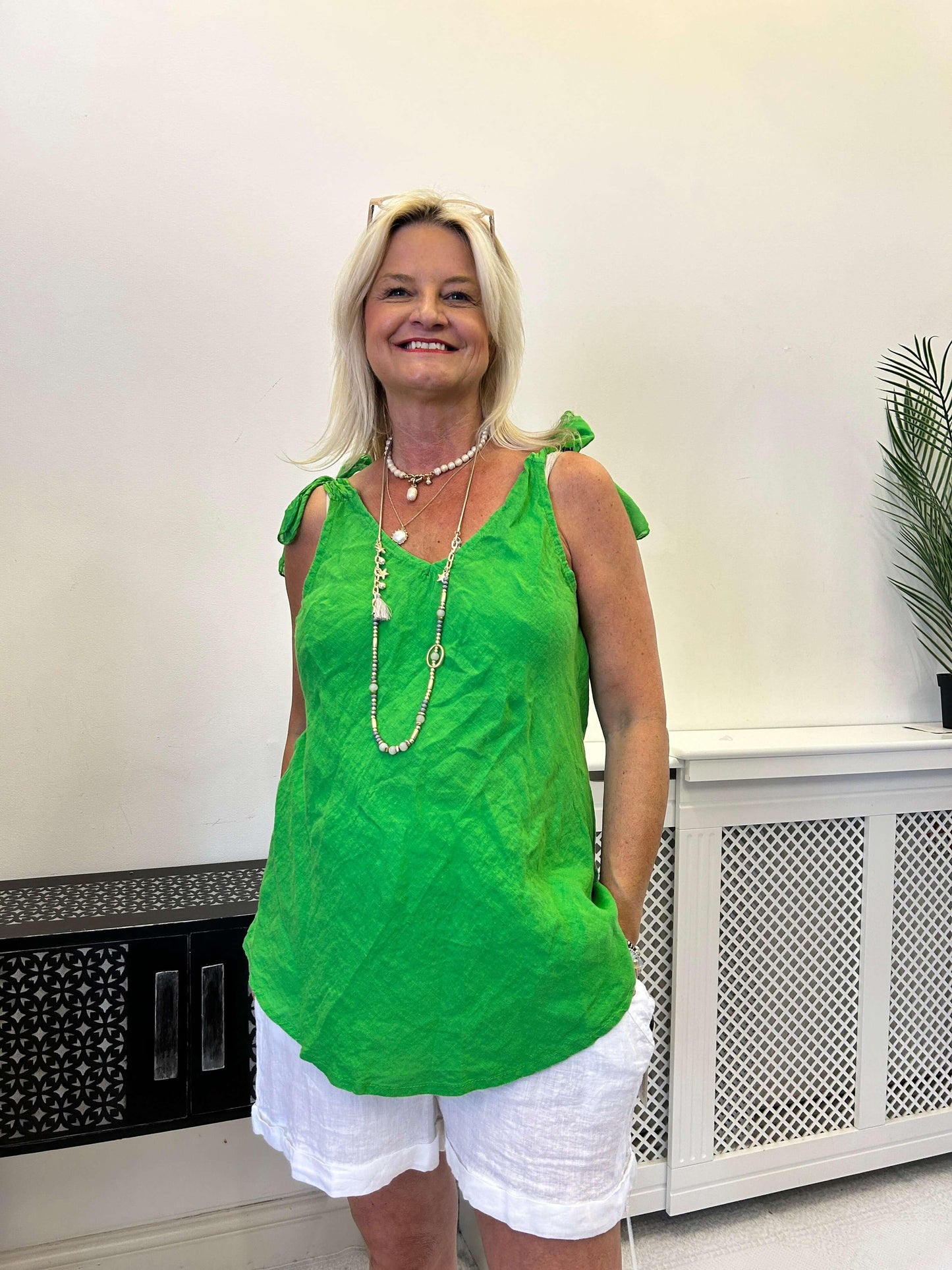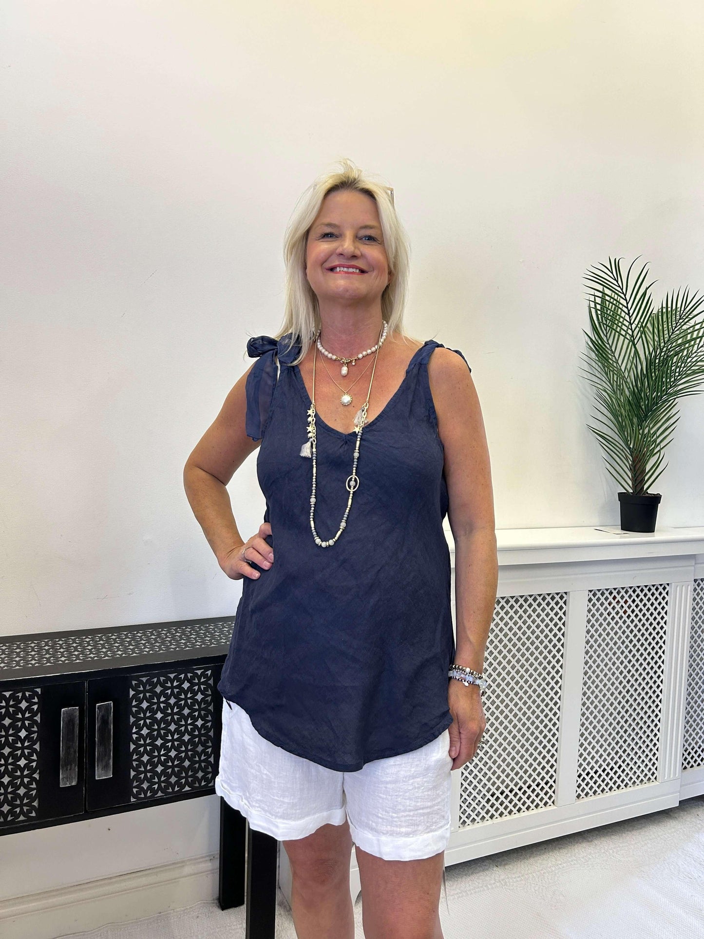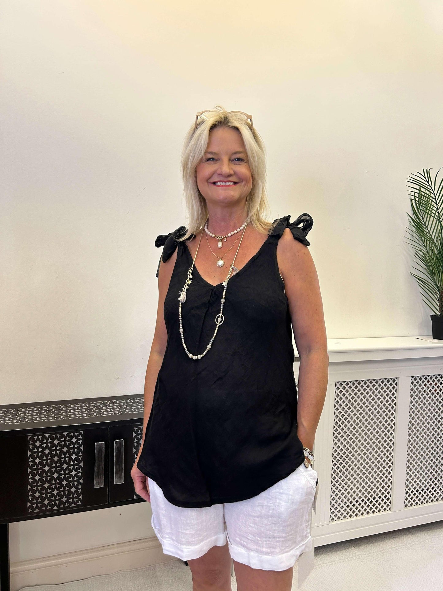 Handkerchief Hem Cotton Vest Top with Silky Tie Straps