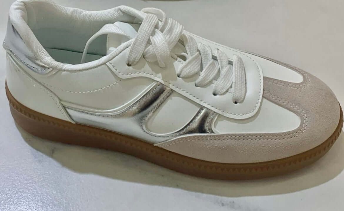 Introducing our Ladies Casual Retro Metallic Trainers, the perfect blend of style and comfort. Features include a contrast rubber sole, lace-up fastening, and a timeless design. Available in silver or gold. Step out in style and turn heads with these unique trainers.