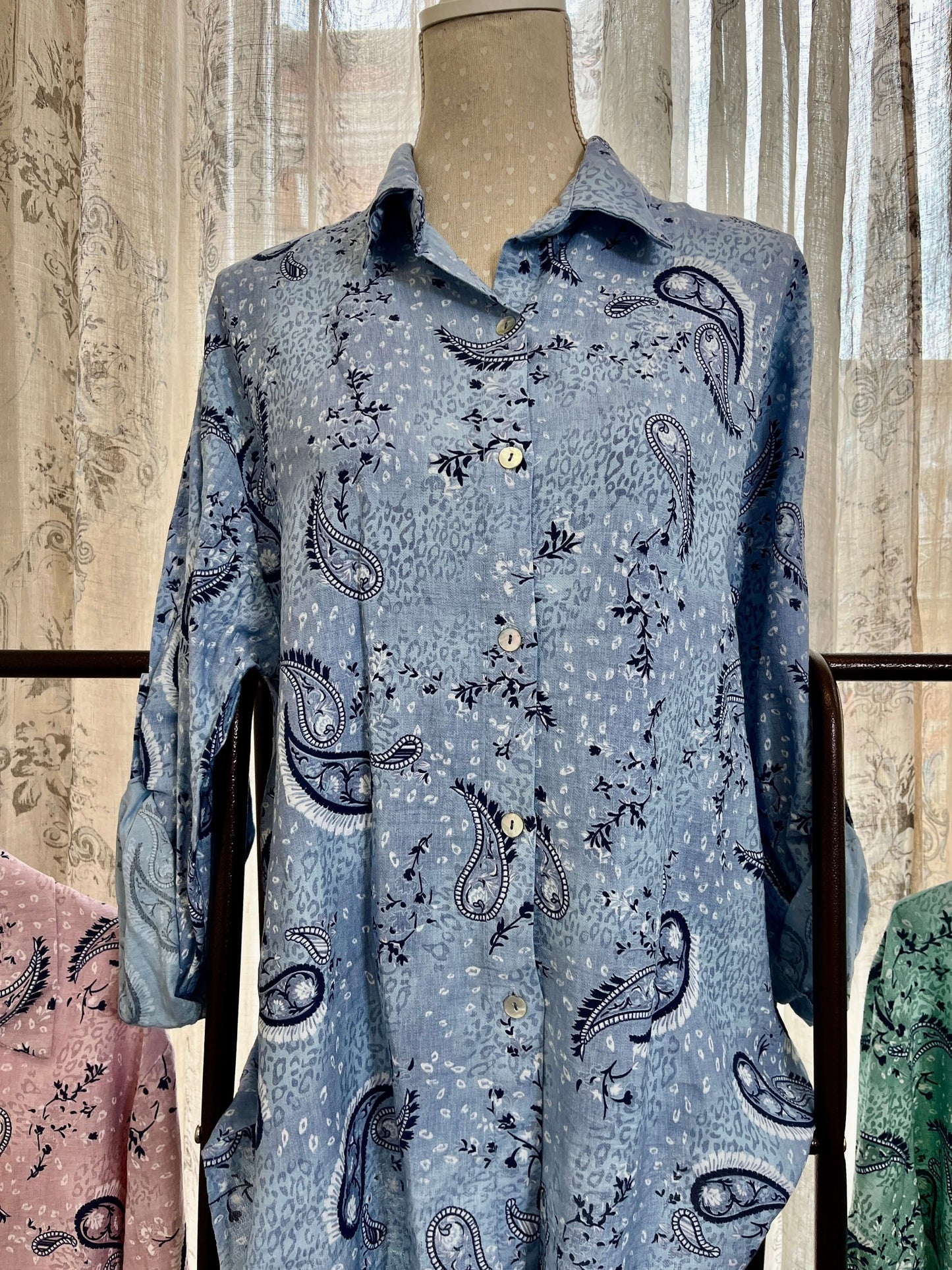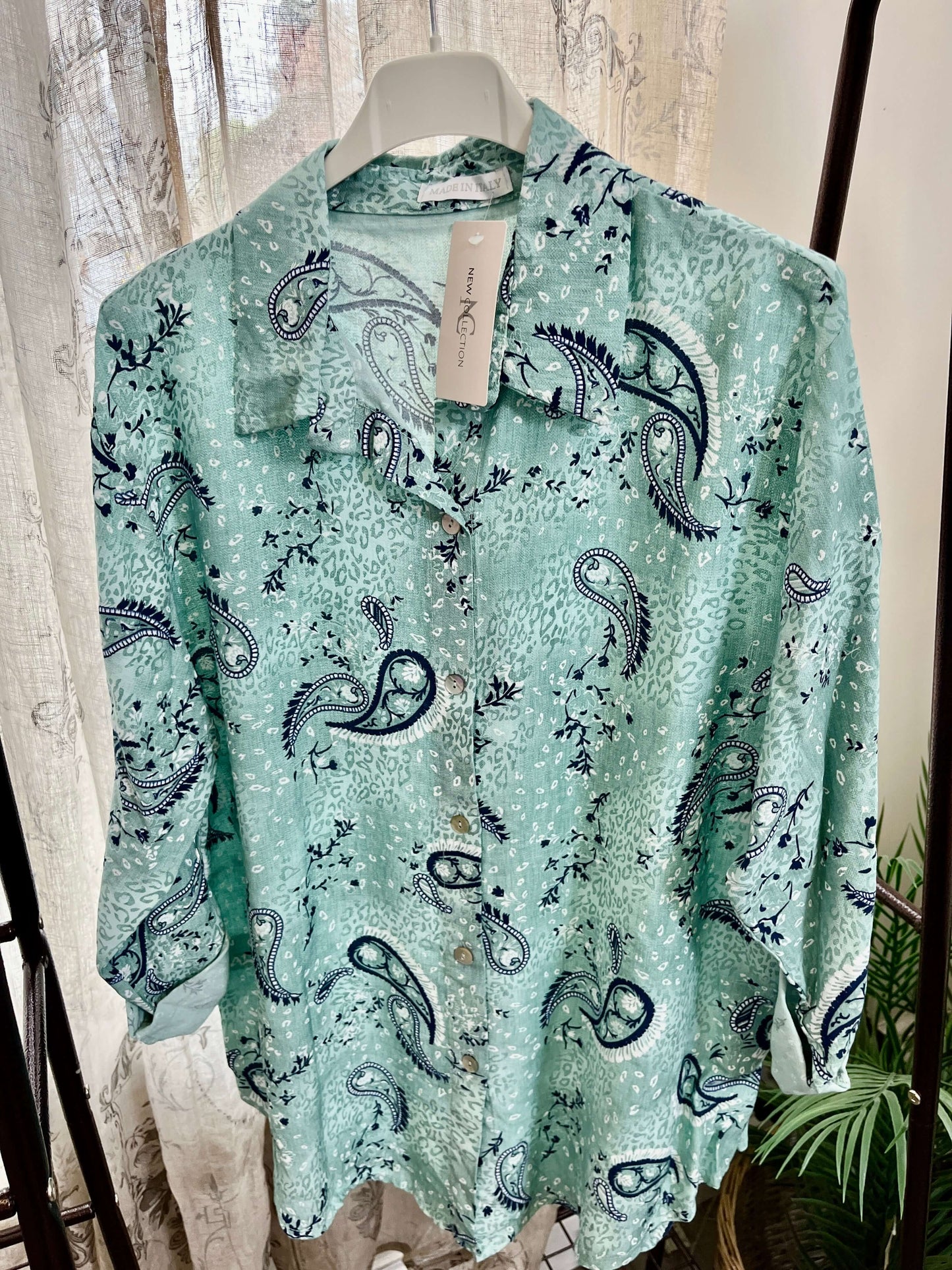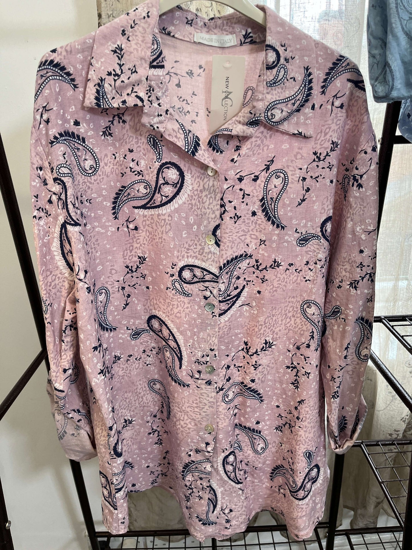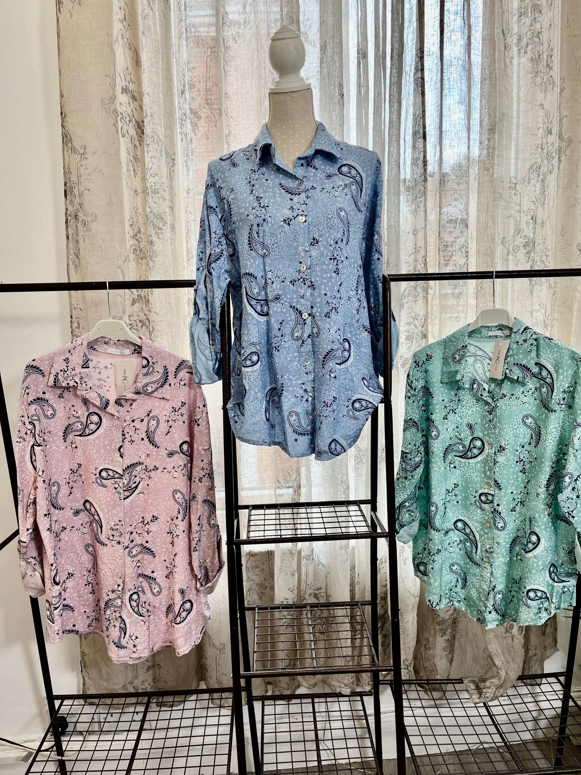 Introducing our Ladies Paisley Shirt, the perfect addition to your wardrobe. This shirt features a classic paisley pattern and is designed with 5 buttons for a sophisticated touch. Elevate your style with this versatile and elegant piece, suitable for any occasion.