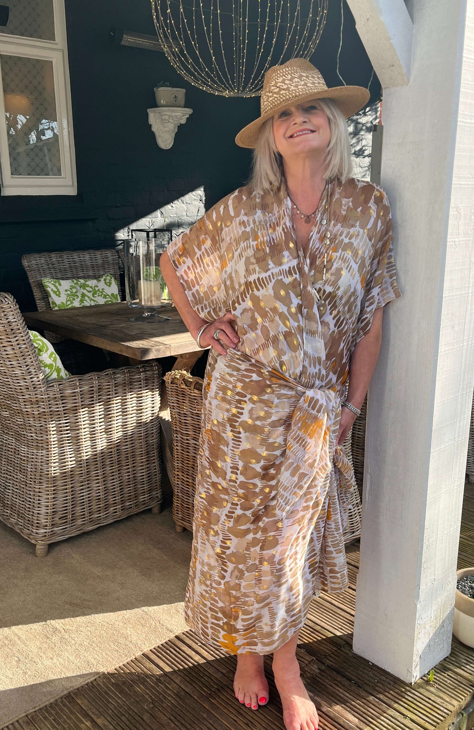 Ladies Abstract Kimono & Scarf/Sarong Combo