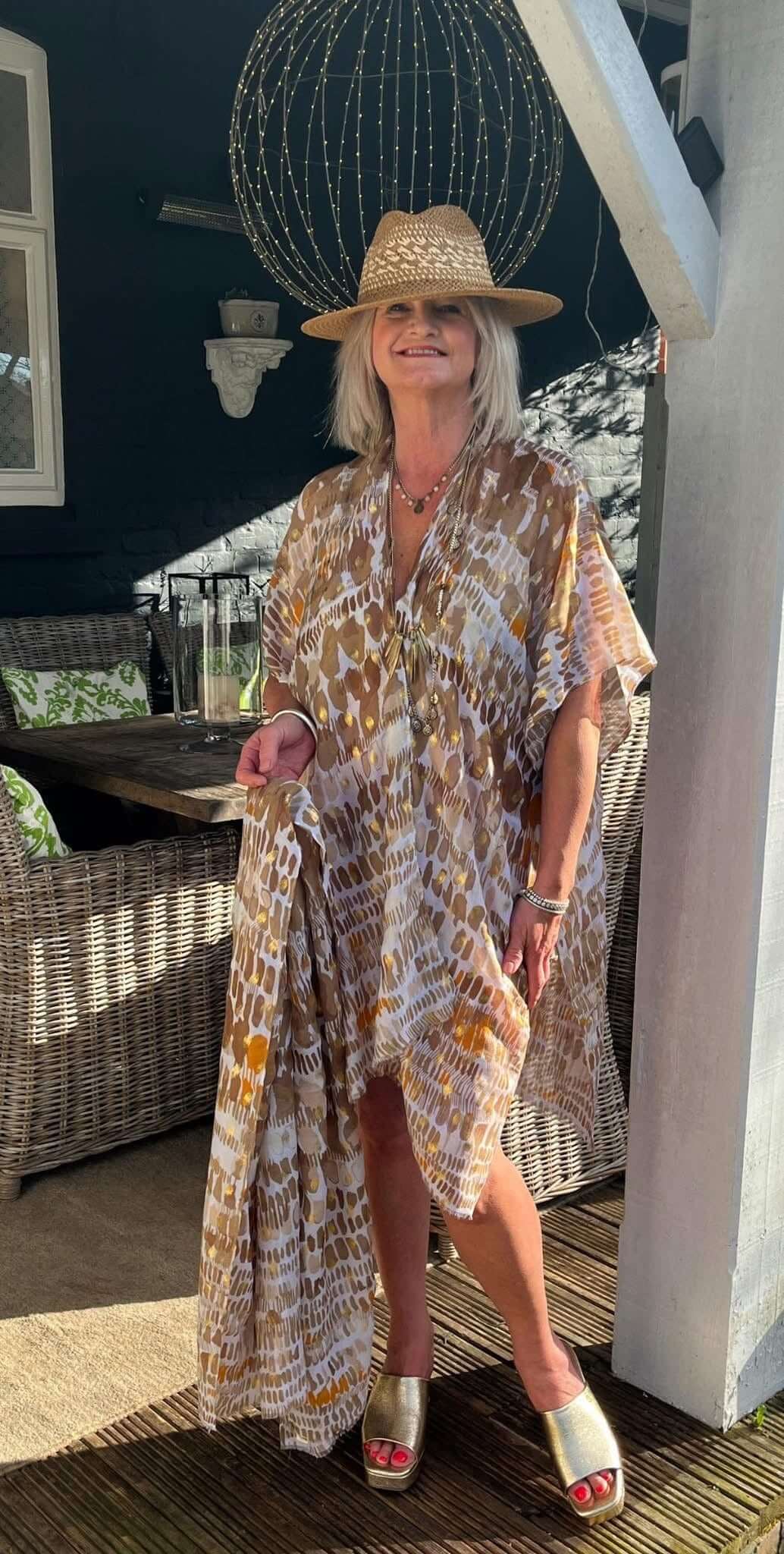Experience comfort and style with our Ladies Abstract Kimono Scarf Combo! The loose sleeves and v-neck design provide a relaxed fit, while the split sides add a touch of elegance. Made with 100% polyester, this scarf combo is soft and lightweight. Elevate your wardrobe today!