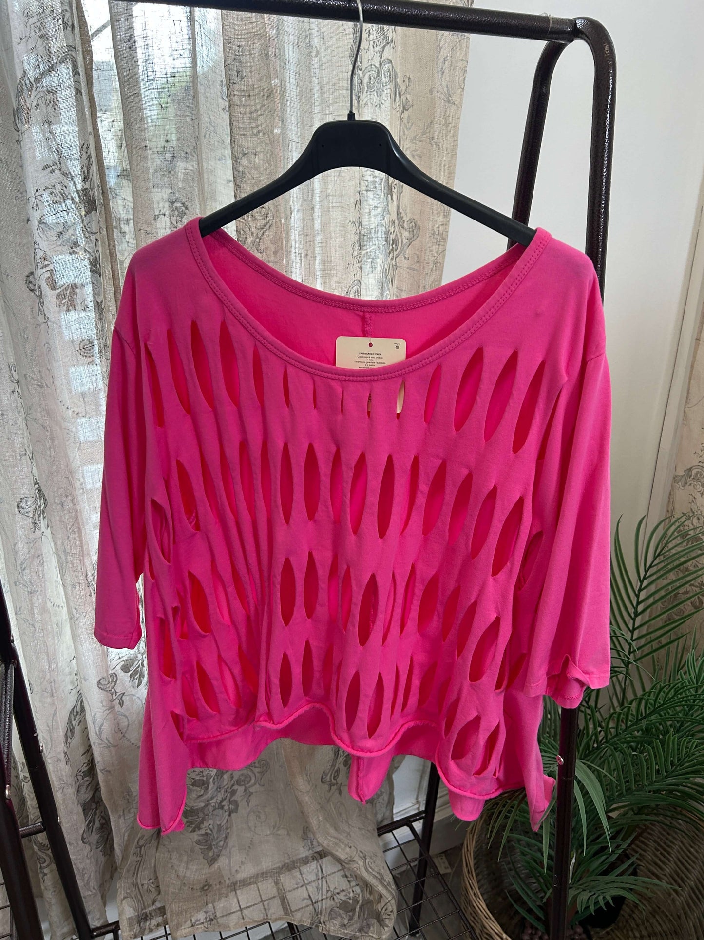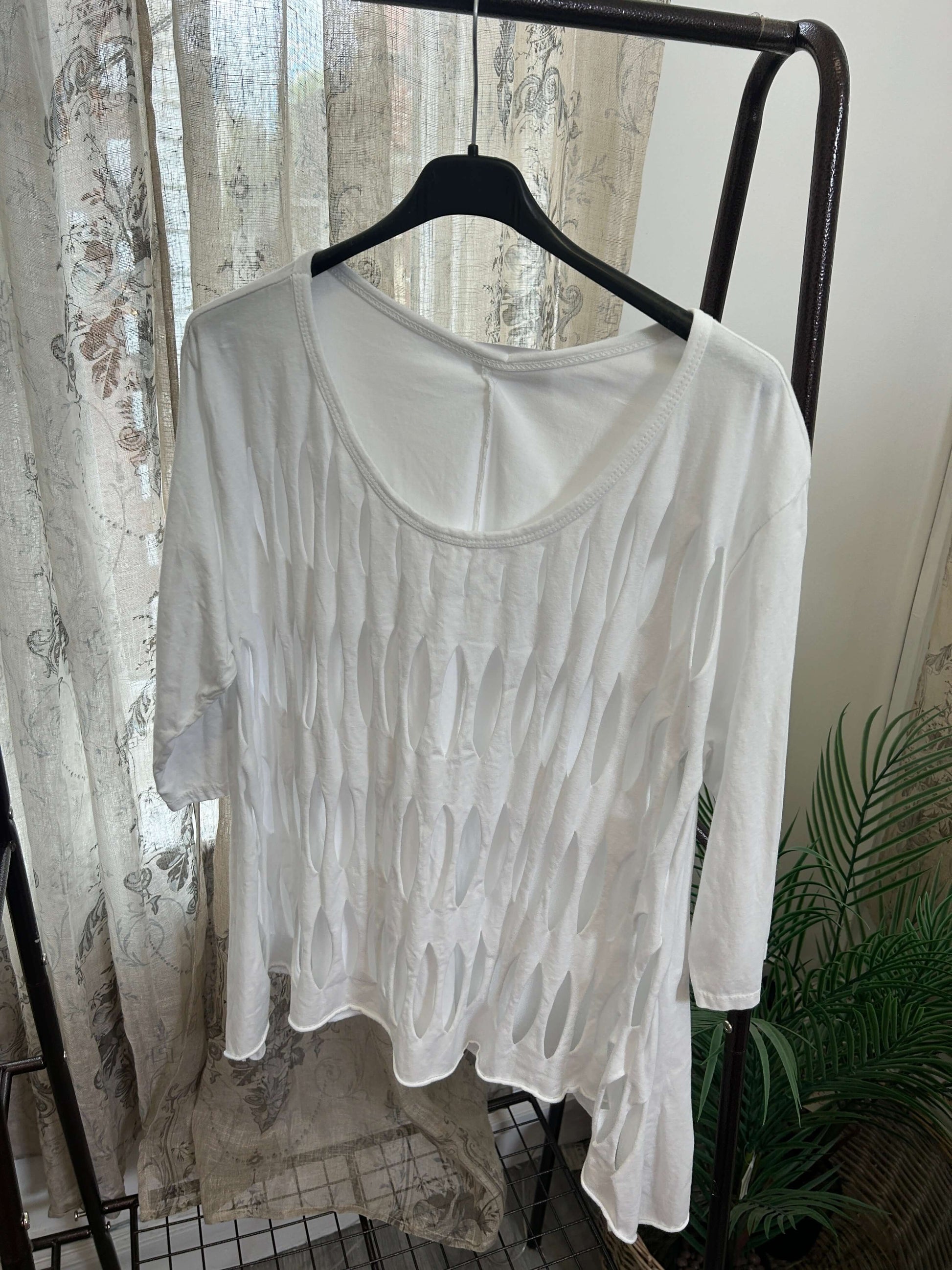 Get ready to layer up in style with our Lazer Cut Detail Layering T-Shirt! This funky top is perfect for spring and summer, and its one size fits 8-16 makes it a versatile addition to any wardrobe. Make a statement with this playful and unique piece!