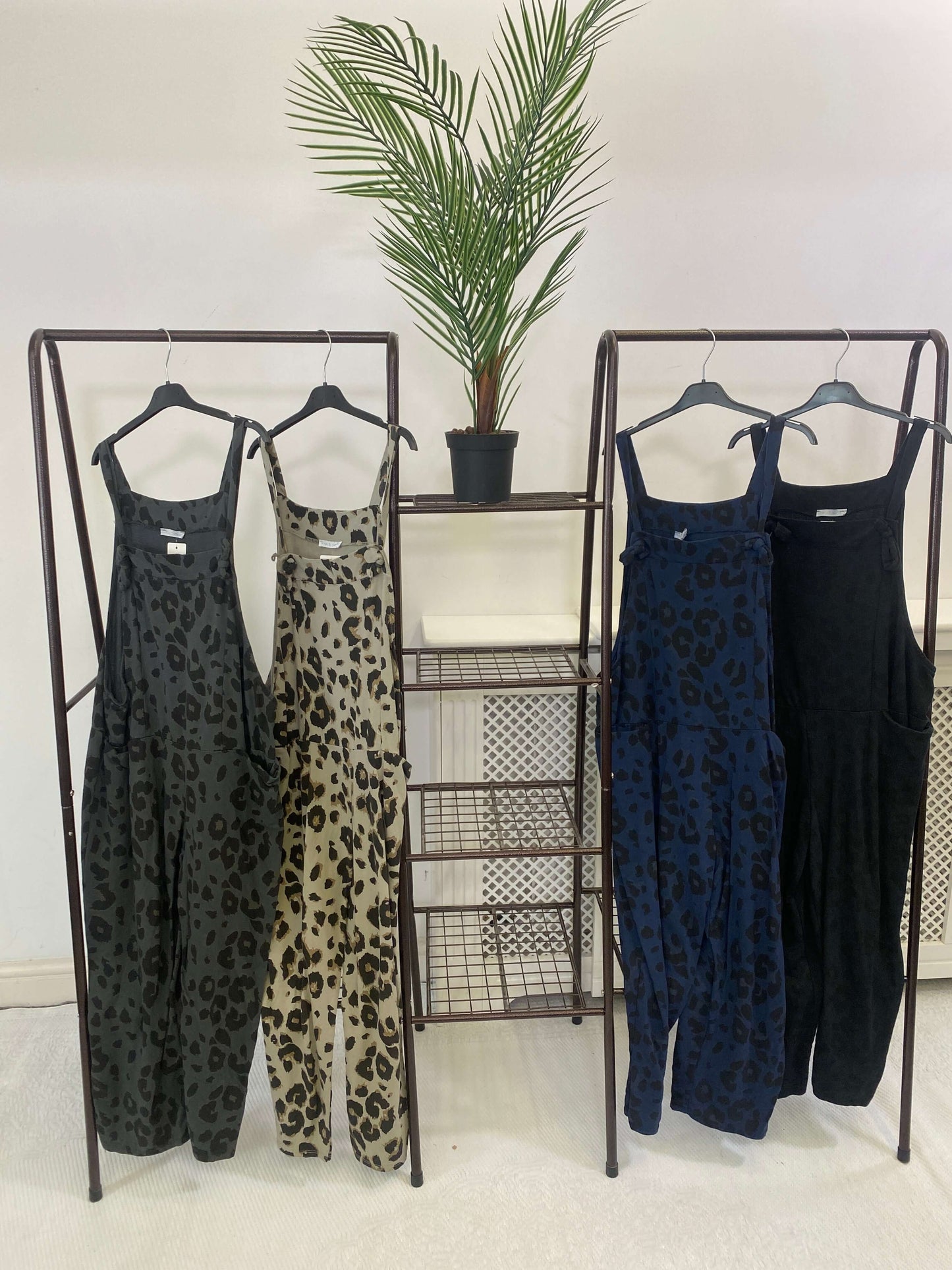 Make a bold fashion statement with these Leopard Print Dungarees. Fashioned in a luxe jersey fabric, these dungarees provide a comfortable, yet stylish look that is as unique as it is eye-catching, oozing elegance with each structured pleat and curving seam.