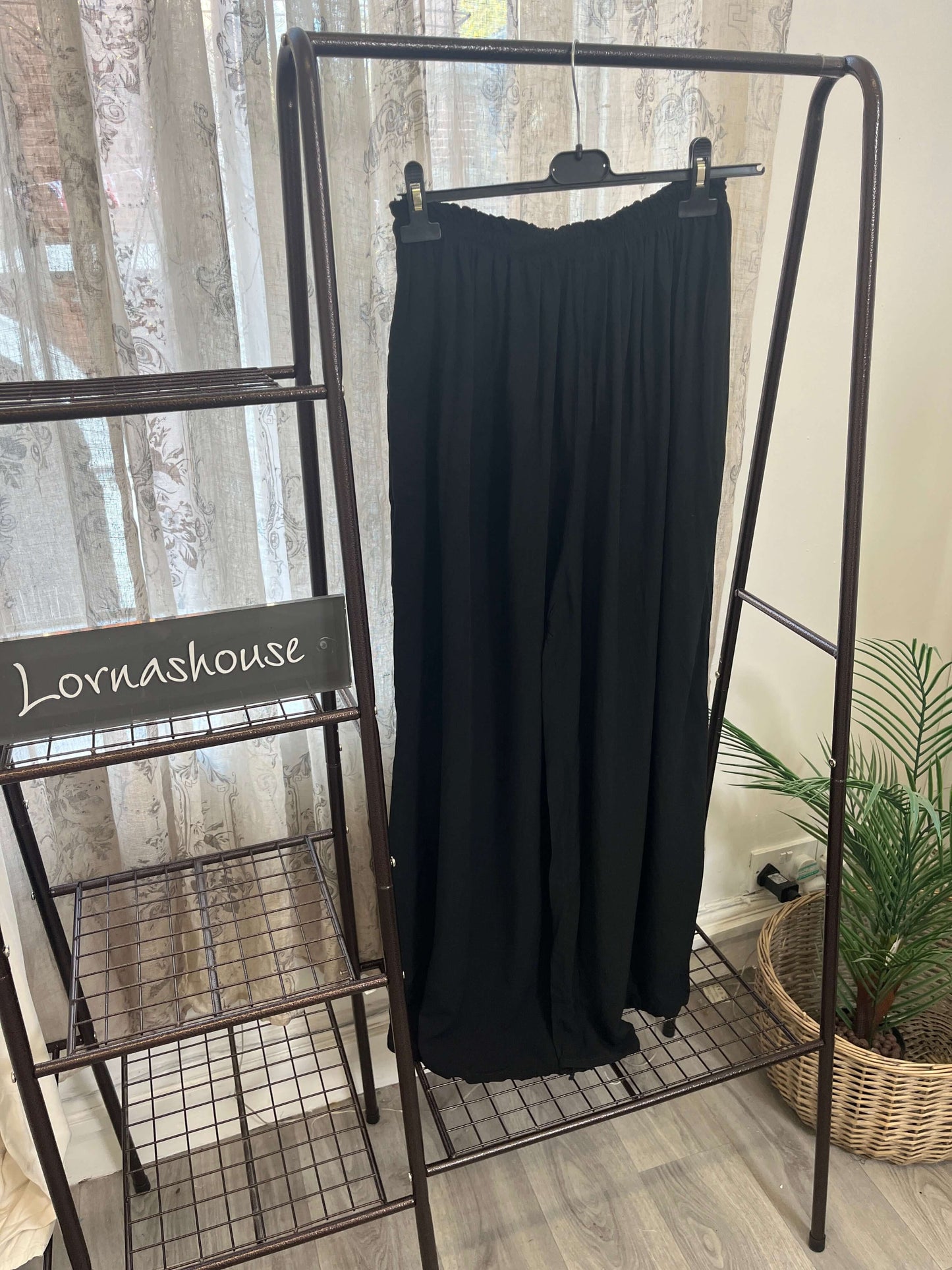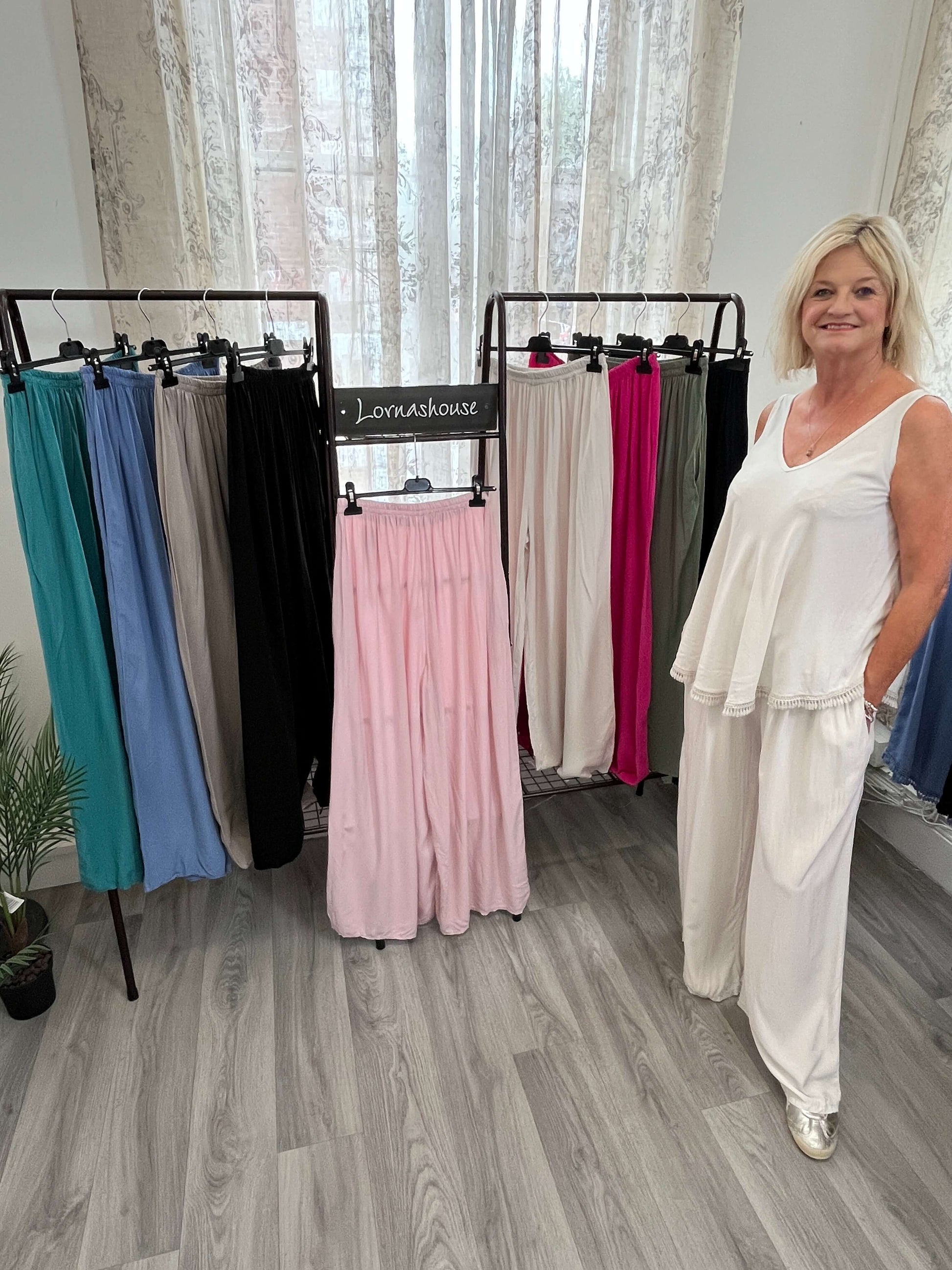 Elevate your wardrobe with the Lexi Palazzo Trouser, designed for effortless style and comfort. Its wide-leg silhouette offers a flattering fit that moves gracefully with you, perfect for both casual outings and sophisticated occasions. Crafted from breathable fabric, these trousers keep you comfortable all day while adding a chic, modern edge to any outfit. Make a statement with the Lexi Palazzo Trouser—where elegance meets ease.