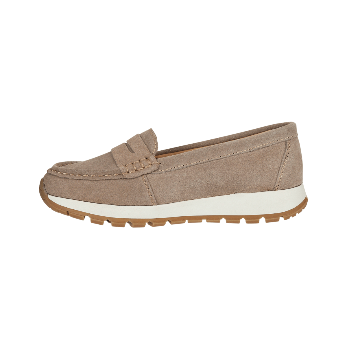 Step into effortless style with the Lima Suede Loafer in Latte. This ladies loafer features a chunky unit for added comfort and a classic saddle design. With a beige lining, these shoes are perfect for any occasion, making them a must-have for your wardrobe. (Sole-d up to be your new go-to shoe!)