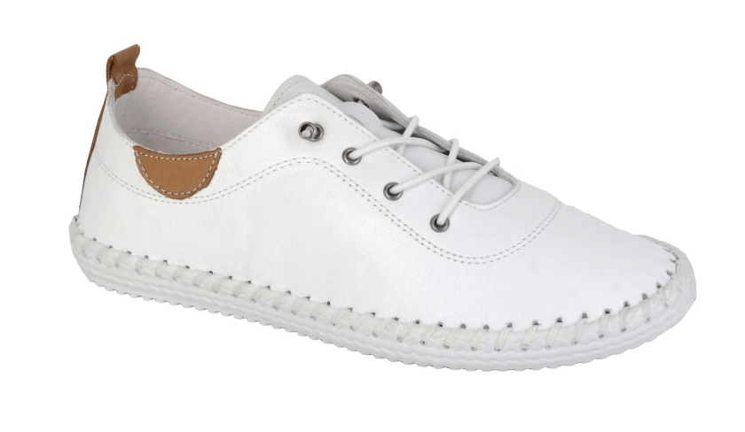 Mod Comfys - Softie Leather Casual Elastic Lace up Shoe (White)