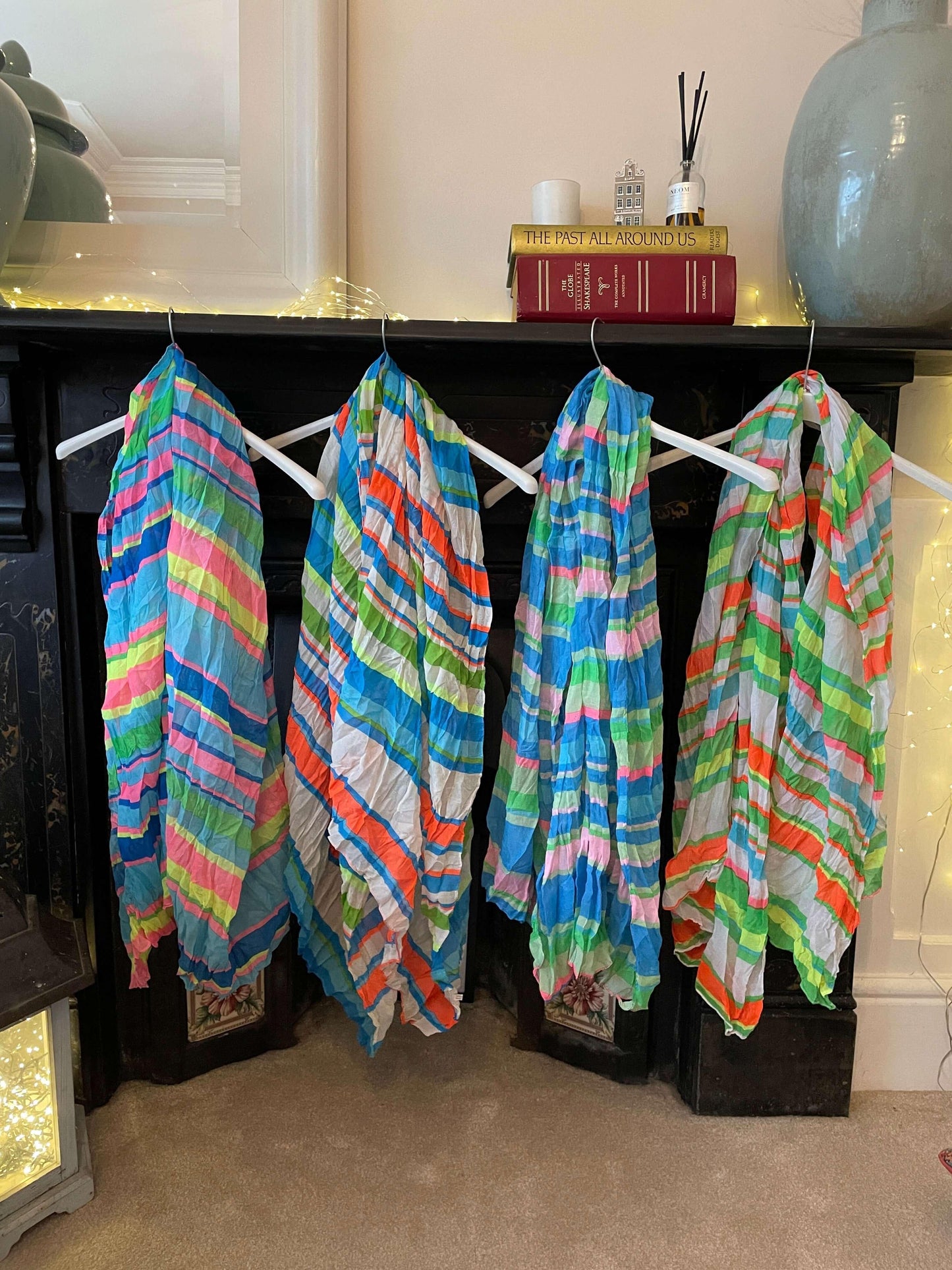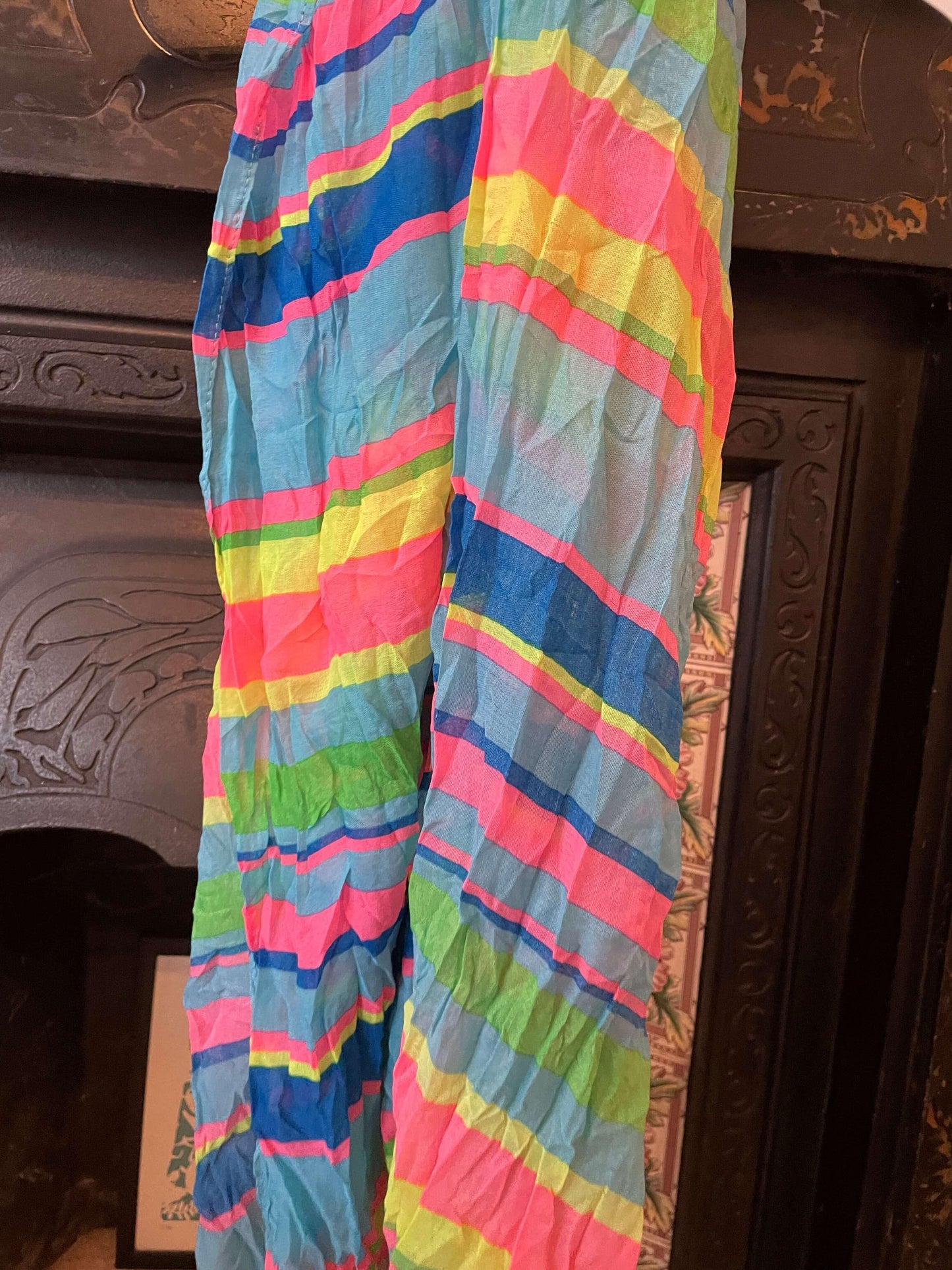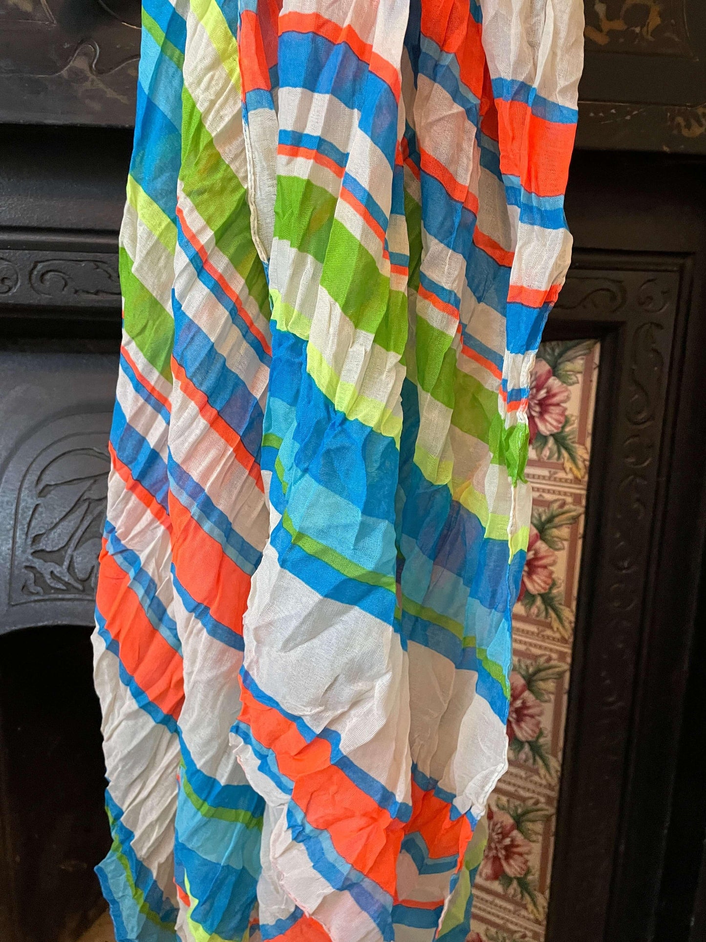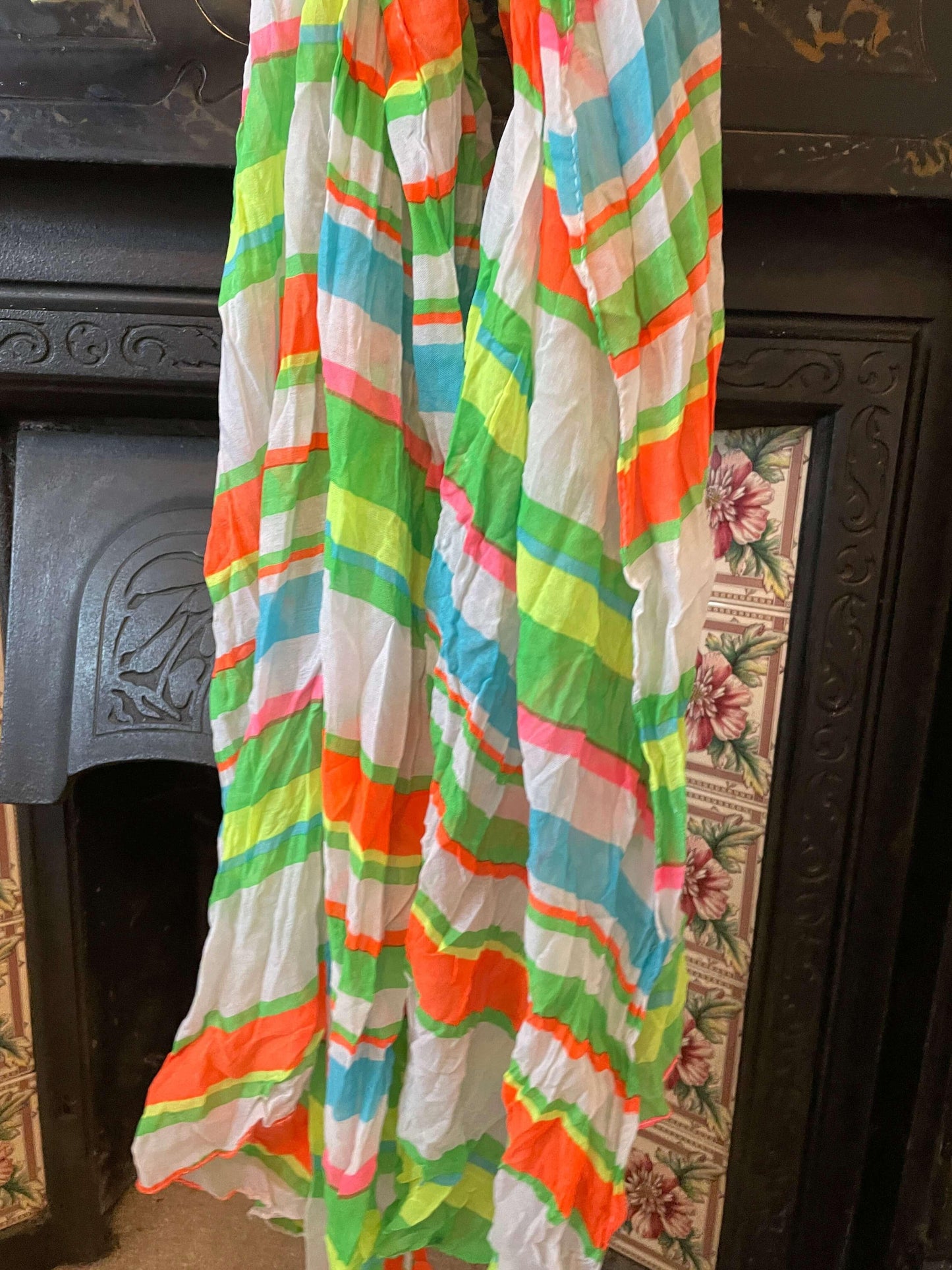 Make a bold statement in this vibrant neon striped scarf! Its slub texture adds an extra touch of excitement and a unique spin on the classic stripe look. So get ready to stand out and show off your style! 🔥